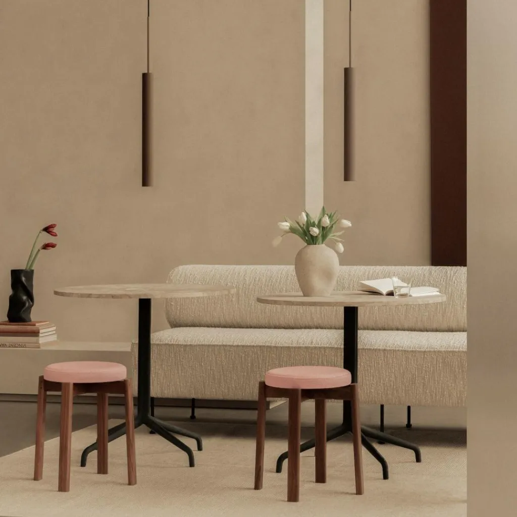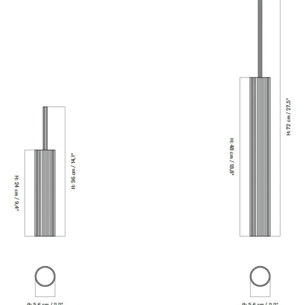Die Tubulaire Pendelleuchte wiegt 700g. Ihr röhrenartiger Schirm hat neben einem sichtbaren industriellen Designwert einen Durchmesser von 5,6cm. Er ist in zwei unterschiedlichen Höhen erhältlich: 24cm und 48cm. Mit einer Kabellänge von 400cm lässt sich die Leuchte flexibel über einem Tisch montieren, sei es im Büro, im Essbereich oder in der Sitznische eines Cafés. Mehrere in einer Reihe oder als Cluster angebrachte Pendelleuchten der Tubulaire-Kollektion von Audo ergeben eine einzigartige Lichtinstallation.