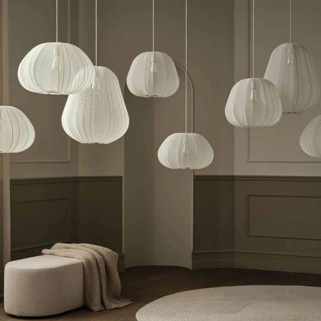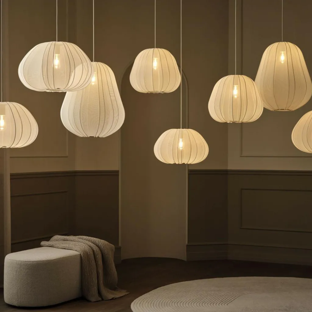 Ihr luftiger, transparenter Stoff erinnert an filigrane Papierlaternen und verleiht der Balloon Pendelleuchte Ø 53,5cm eine sanfte, verspielte Ausstrahlung. Das Licht wird dezent reflektiert und schafft eine angenehme Atmosphäre im Raum. Ein feines, farblich abgestimmtes Stahlgestell gibt der Leuchte ihre charakteristische Tropfenform und betont durch die sichtbaren Streben die dreidimensionale Wirkung. Der Leuchtenschirm besteht aus einem leichten Gewebe mit 92 % Nylon und 8 % Elastan. Durch ihre Transparenz wirkt die Leuchte besonders unaufdringlich und schwebend. Der Schirm hat einen Durchmesser von 53,5 cm und eine Höhe von 60 cm. Die Leuchtenfassung sowie das drei Meter lange Textilkabel sind farblich auf das Gestell abgestimmt. Dank der Kabellänge eignet sich die Pendelleuchte auch für hohe Räume. Die Balloon Pendelleuchte Ø 53,5cm wird ohne Leuchtmittel geliefert. Sie ist mit einer E27-Fassung ausgestattet, sodass die Lichtfarbe individuell über das gewählte Leuchtmittel bestimmt werden kann. In Kombination mit einem dimmbaren Leuchtmittel und einem passenden System lässt sich die Helligkeit flexibel anpassen.