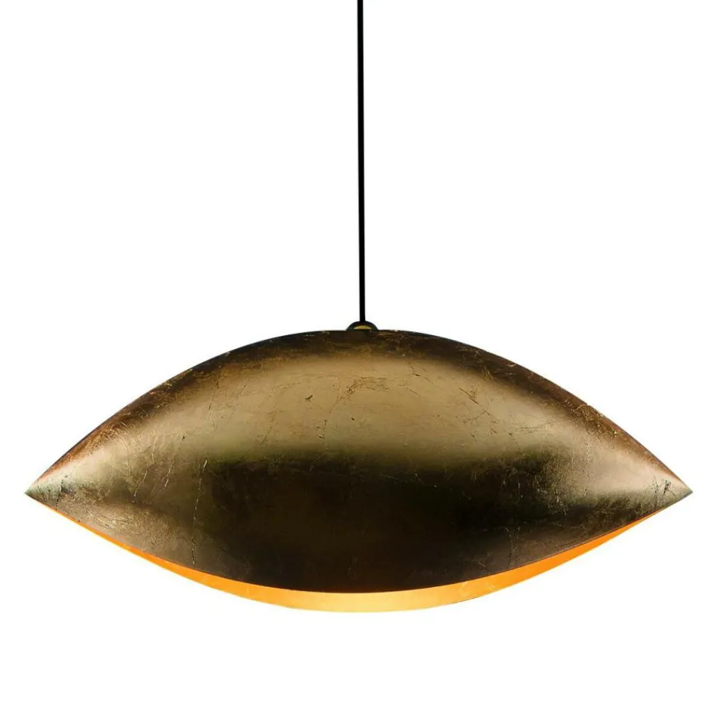 Die Malagola 55 Pendelleuchte wirkt ein wenig wie ein zusammengerolltes Blatt. Die beiden Enden laufen spitz zu. Das Gestell wird aus Metall gemacht. Darüber ist ein Schirm aus Aluminium befestigt. Die Oberfläche ist mit einer Folie beschichtet, die es in verschiedenen Farben gibt. Durch den Spalt an der Unterseite des Leuchtenschirms dringt das Licht nach unten aus. Die Malagola 55 Pendelleuchte passt über jeden Tisch: Sie eignet sich für das Wohn- oder Esszimmer, den Konferenztisch oder ein elegantes Restaurant. Für längere Tische kann man mehrere Modelle nebeneinander aufhängen.