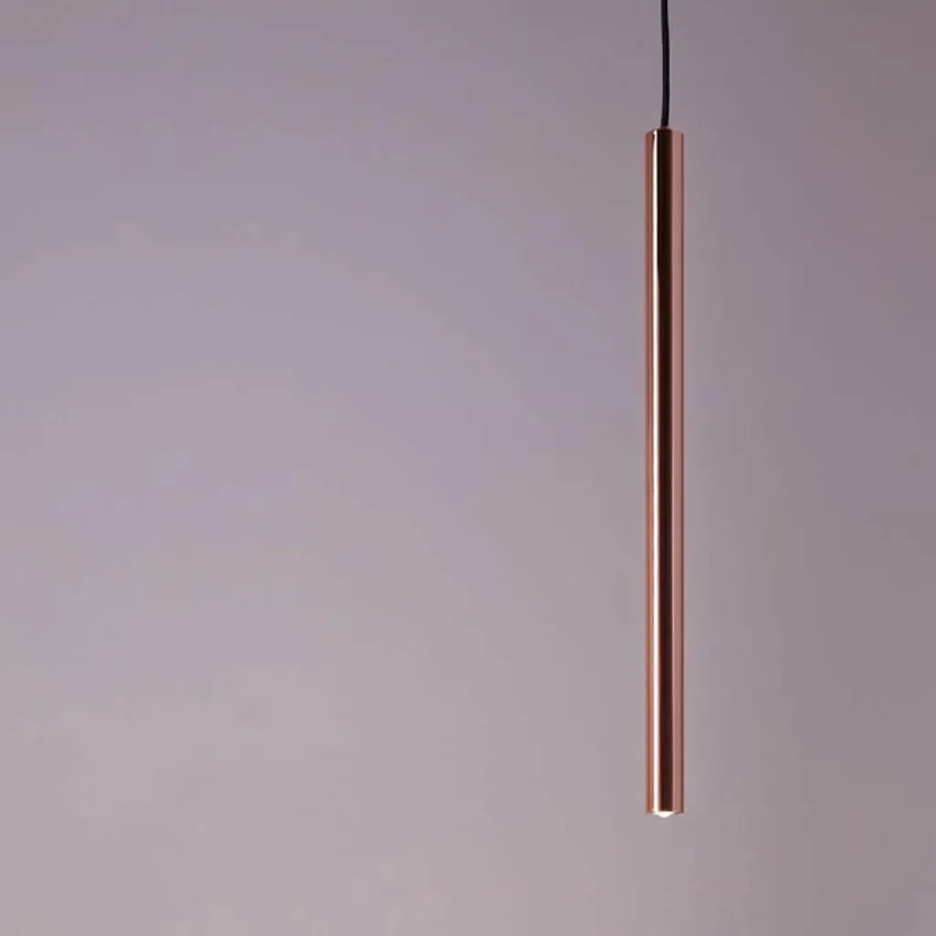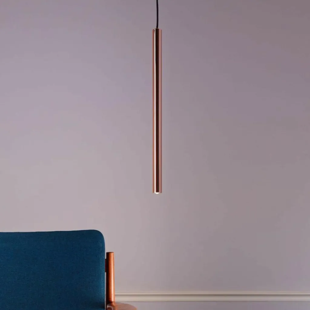 Pipe 1 LED Pendelleuchte. Die Pipe 1 LED Pendelleuchte von Decor Walther macht ihrem Namen alle Ehre. Der Leuchtenkörper besteht hier tatsächlich lediglich aus einer schmalen kupfernen Röhre, die die beeindruckende Lichtwirkung behutsam unterstreicht.