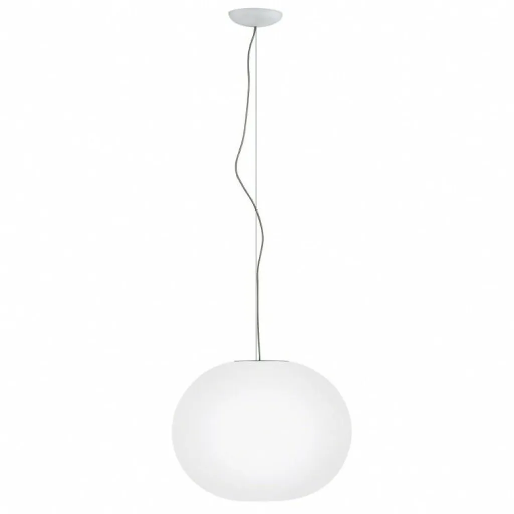 Unverwechselbar ist die Glo Ball S1 Pendelleuchte wegen ihres Leuchtenschirms aus mundgeblasenem Opalglas. Die geätzte Oberfläche sorgt für matten Schimmer. Aus der Glo Ball S1 Pendelleuchte dringt aus allen Seiten blendfreies Licht in den Raum. Der Diffusor ist mit einem Stahlkabel am Baldachin befestigt, wobei die maximale Abhängungslänge 370 cm beträgt. Als Verbindung zwischen Leuchtenschirm und Kabel dient eine Halterung aus flüssig lackiertem Stahlguss. Der Baldachin besteht aus Polyamid, das mit Glasfaser verstärkt ist.