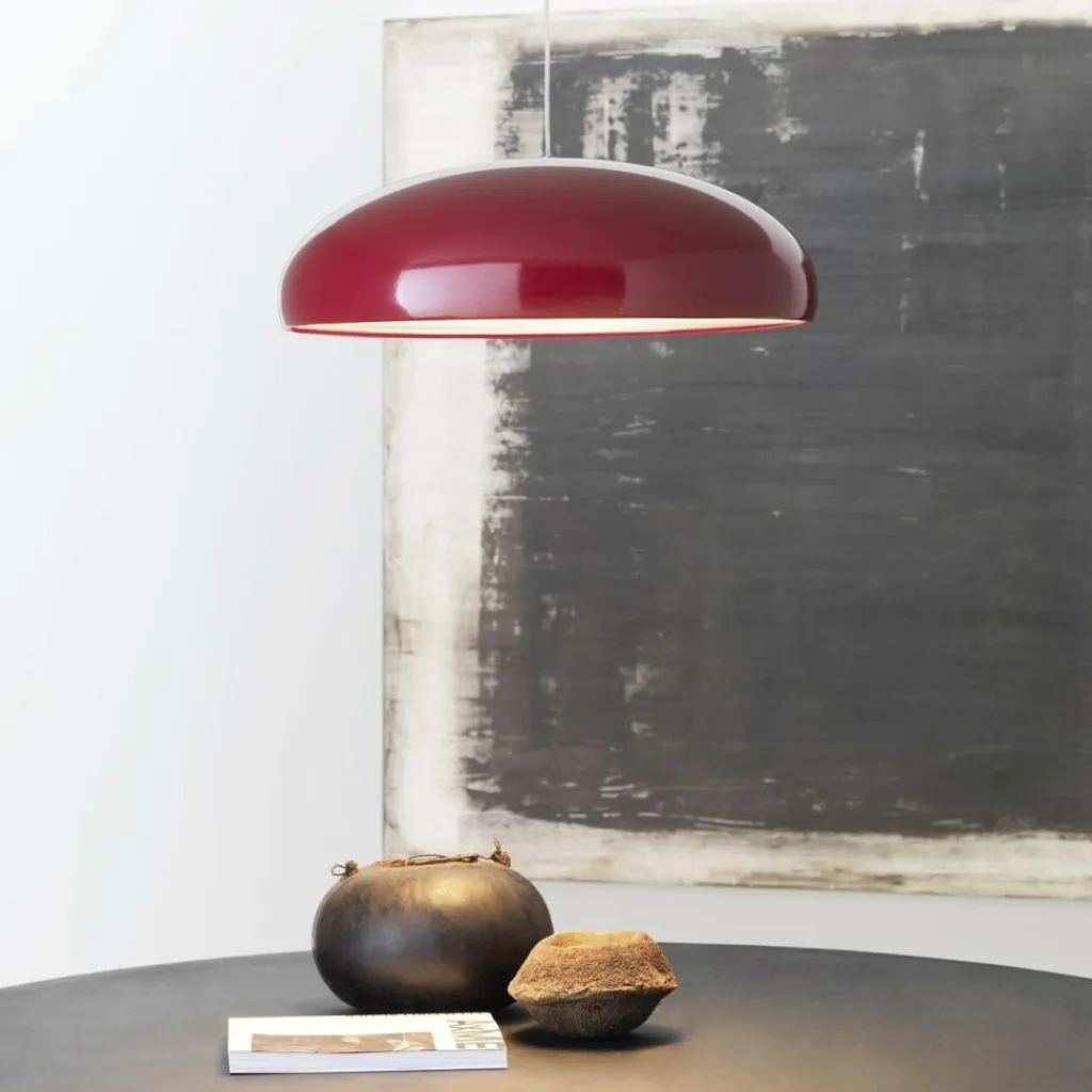 Die Pangen Pendelleuchte wurde vom Designer-Team Historical Archive für den Hersteller Fontana Arte entworfen. Das firmeninterne Designer-Kollektiv schickt sich mit dieser Hängelampe an, eine minimalistische und elegante Lösung für stilvolle Ausleuchtung und zeitgemäßes Wohnambiente zu bieten. Reduzierte und weiche Formen bilden ein harmonisches Wohnaccessoire, das durch die ausgewogene Konzeption Räume atmosphärisch aufwertet. Der kuppelförmige Leuchtenschirm zeigt sich markant, fügt sich dennoch sacht und edel in den jeweiligen Einrichtungsstil an. Sie können daher die Pangen Pendelleuchte problemlos auch in etwas ländlicher eingerichtete Wohnlandschaften integrieren.