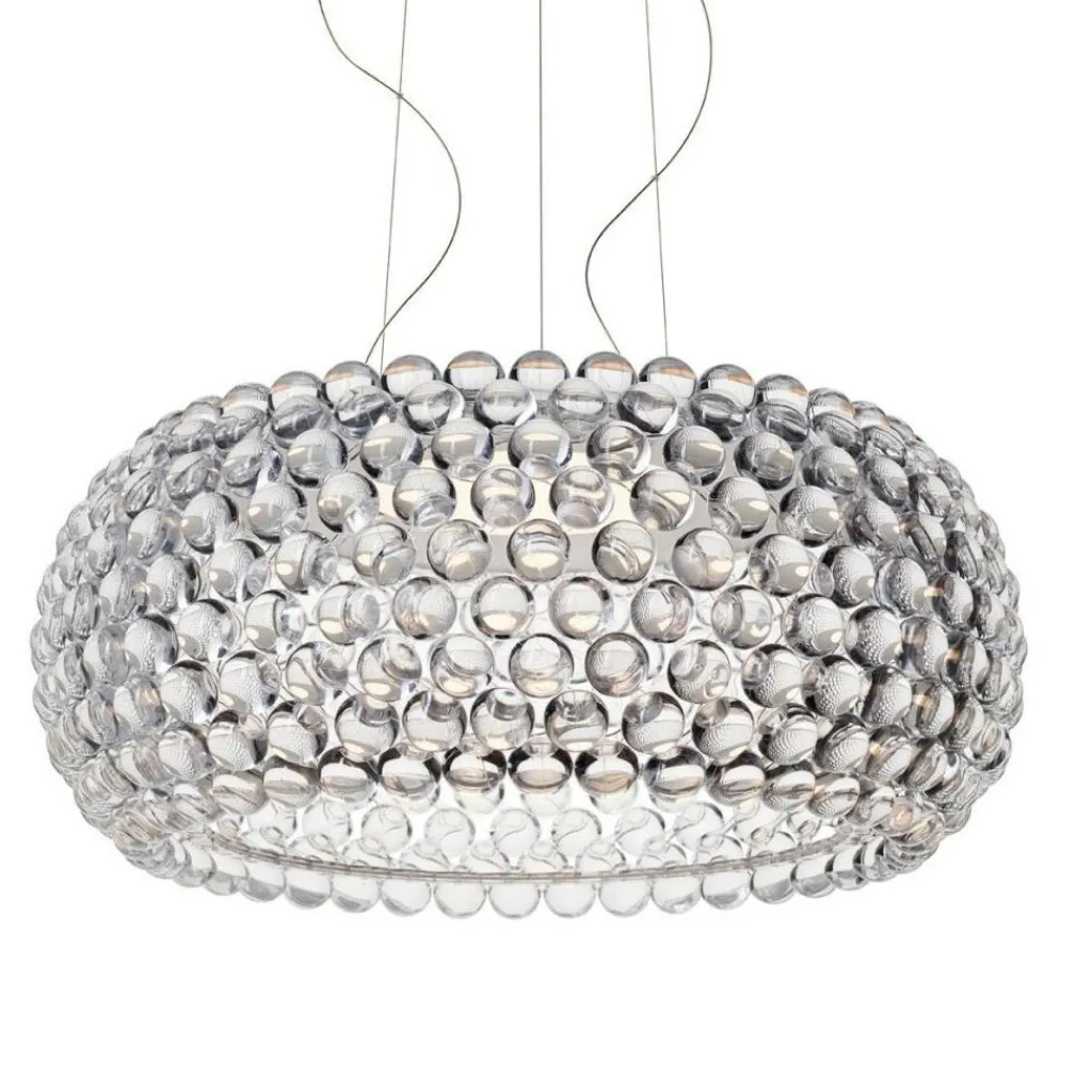 Die Caboche Plus Grande LED Pendelleuchte wurde von Patricia Urquiola und Eliana Gerotto für die Marke Foscarini entworfen. Die beiden Designerinnen fanden ihre Inspiration für die Caboche-Kollektion in einem edlen Schmuckstück: Als sie ein Perlenarmband ansehen, kam ihnen die Idee, eine Leuchte mit ähnlicher Optik zu erschaffen.