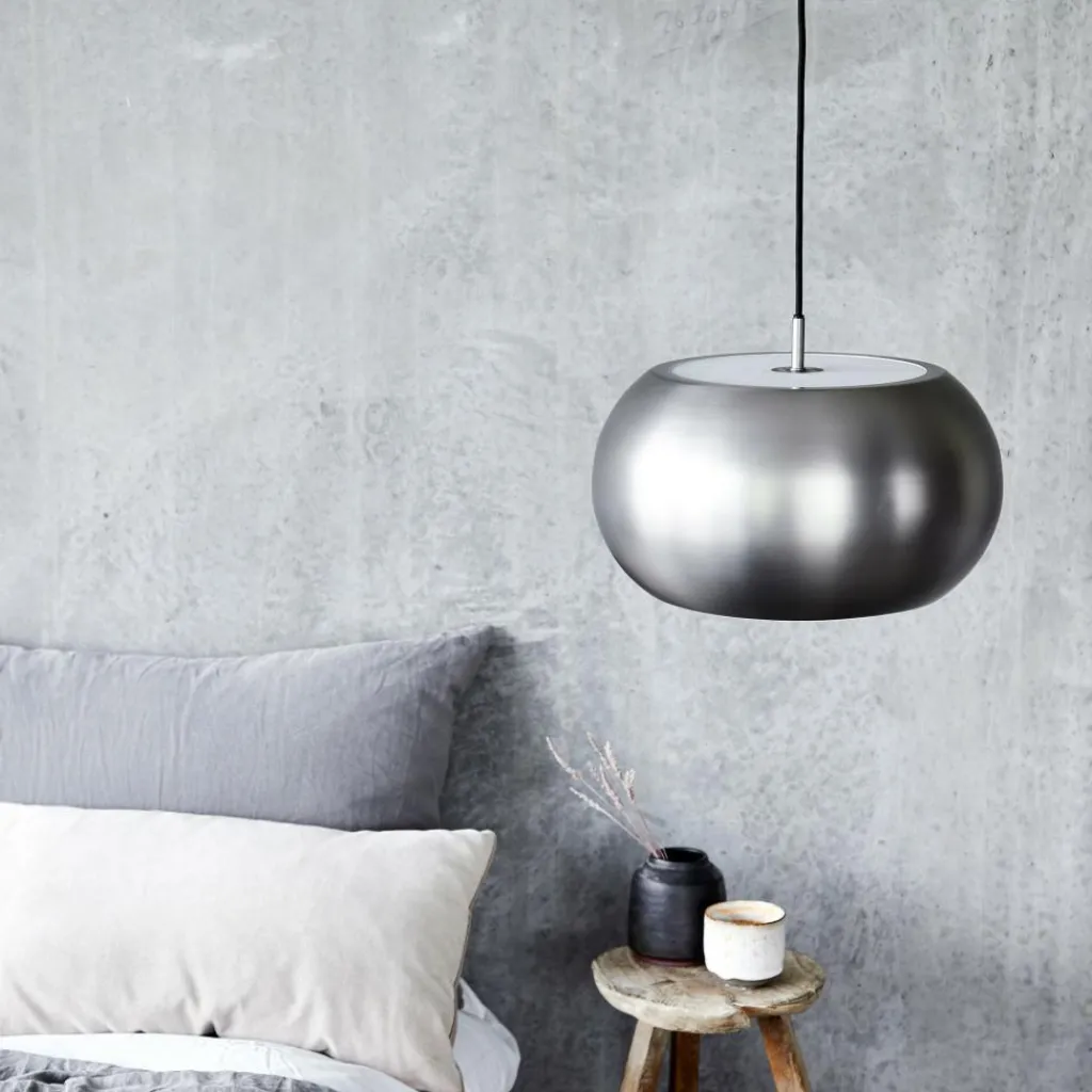 Auffallend ist das Material des Leuchtenschirms: Es ist aus satiniertem und gebürstetem Metall gefertigt. Die BF 20 Pendelleuchte Ø28cm ist 16 cm hoch, der Durchmesser des Schirms beträgt 28 cm. Zur Montage an der Decke wird ein Baldachin mit einem Durchmesser von 10 cm verwendet. Daran ist ein 300 cm langes Kabel befestigt. Die BF 20 Pendelleuchte Ø28cm benötigt ein Leuchtmittel mit einer E27-Fassung. Es kann unter Zubehör mitbestellt werden.