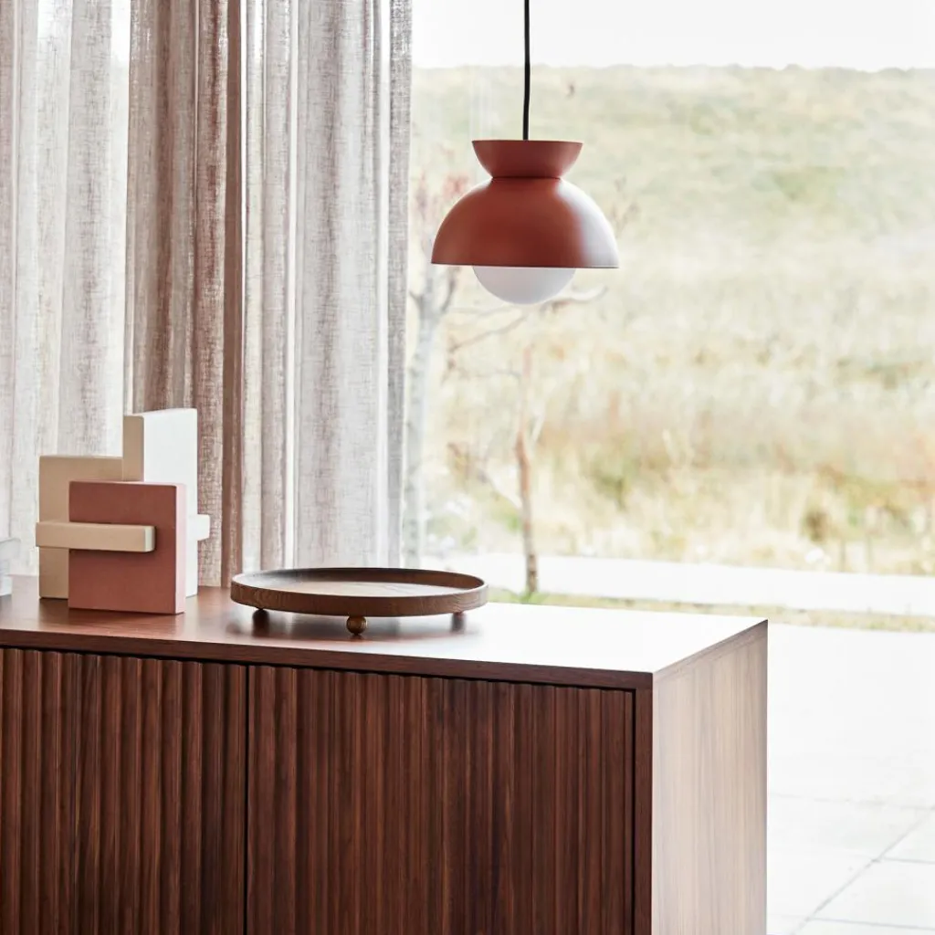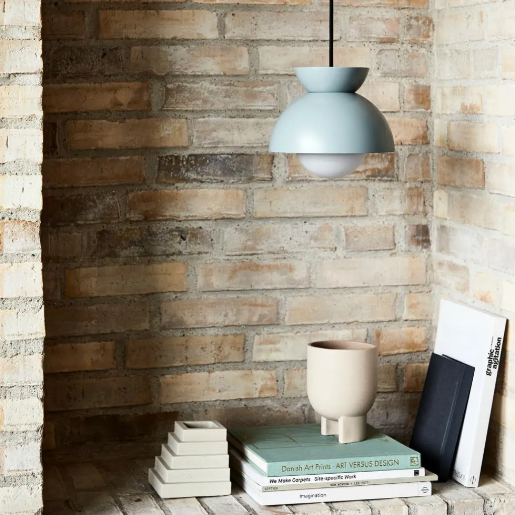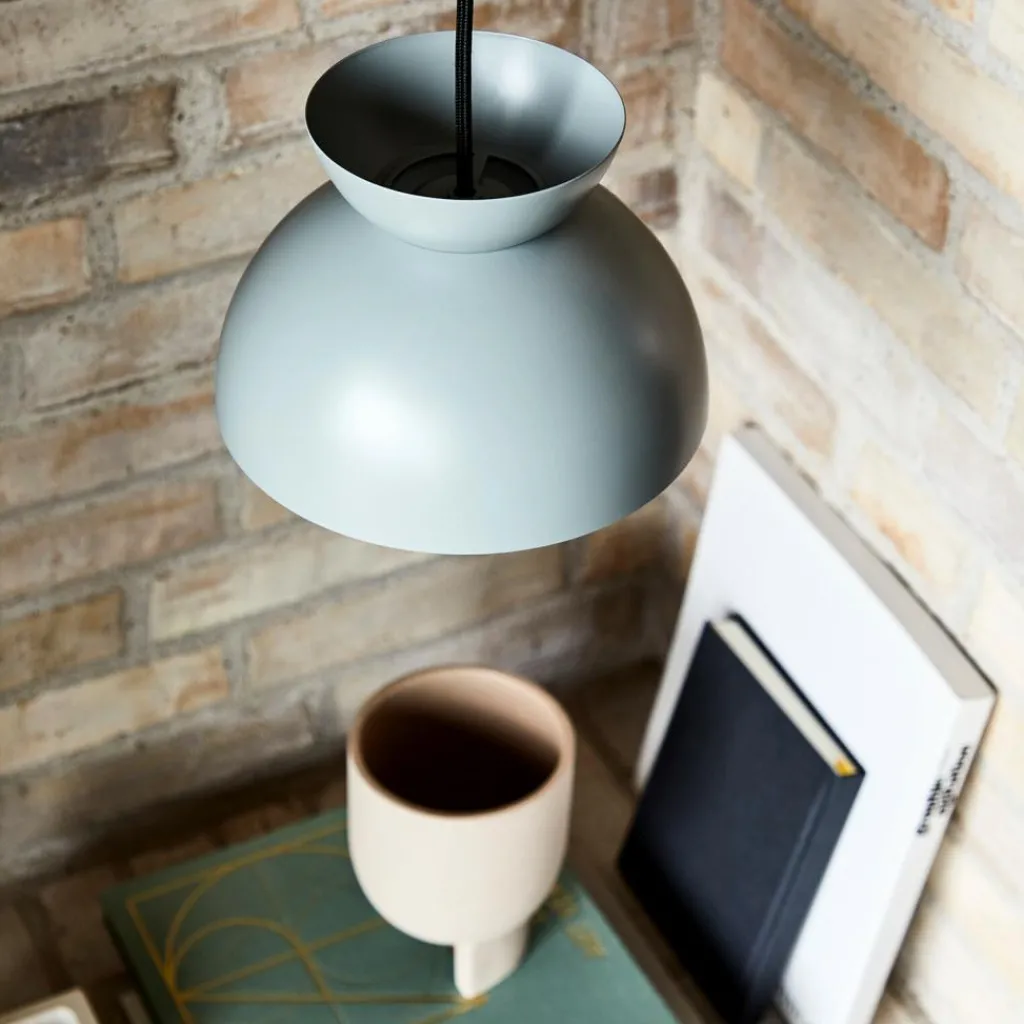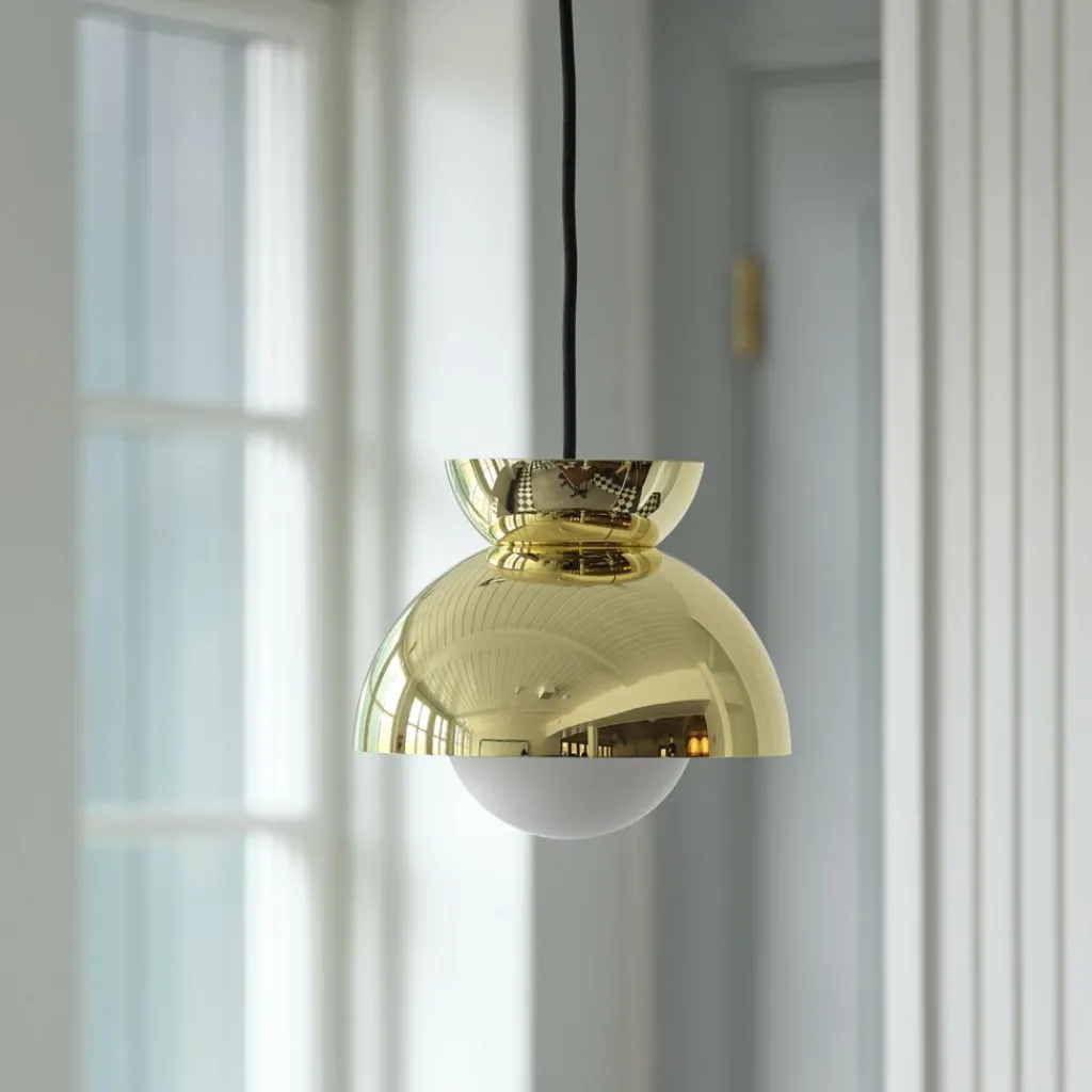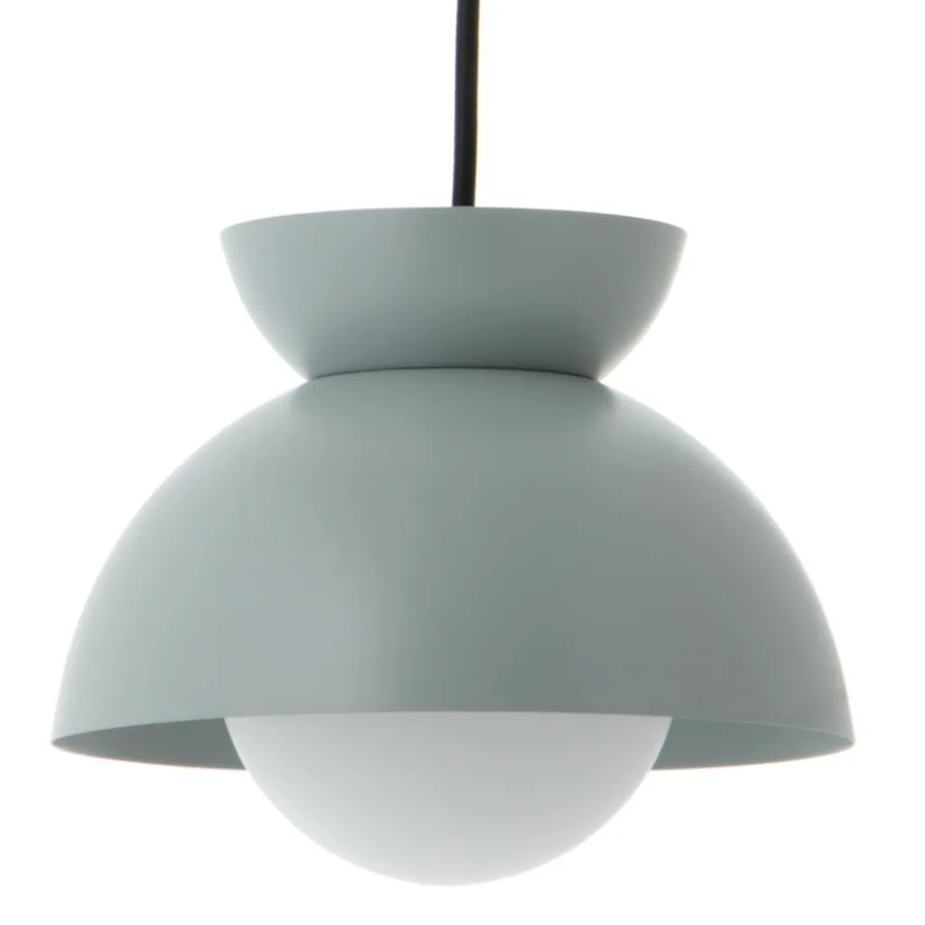 Die Butterfly Pendelleuchte Ø21cm wurde von Toni Rie für die Marke Frandsen entworfen. Es handelt sich um einen schlichten Entwurf, der ein wenig an einen Schmetterling erinnert. Zwei gegengesetzt montierte Halbkugeln bilden den Leuchtenschirm. Sie wirken wie die Flügel des namensgebenden Insekts.