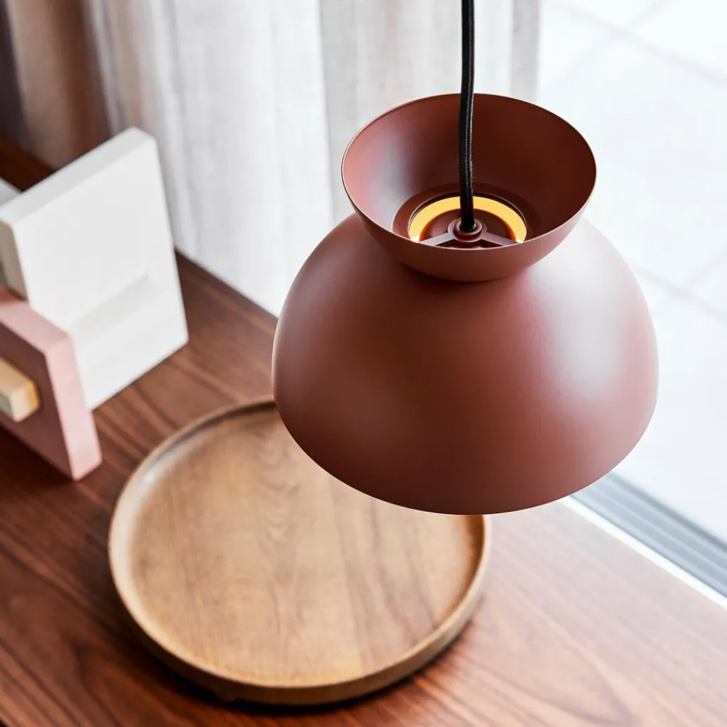 Die Butterfly Pendelleuchte Ø21cm wird aus lackiertem Metall gemacht. Man kann sie in verschiedenen Farben und mit matter oder glänzender Oberfläche kaufen. An der Unterseite des Leuchtenschirms ist ein halbrunder Diffusor aus opalem Glas befestigt. Daraus dringt blendfreies Licht nach unten und an den Seiten aus. Ebenfalls treten Lichtstrahlen aus den oben versteckten Löchern des Leuchtenschirms aus. Zur Befestigung dient halbrunder Baldachin aus Plastik. Er hat einen Durchmesser von 11,5cm und ist 2,5cm hoch. Die Butterfly Pendelleuchte Ø21cm passt über jeden Tisch, egal ob im Büro oder im privaten Bereich. Für größere Tische werden gerne mehrere Butterfly Pendelleuchten Ø21cm in einer Reihe an der Decke befestigt.