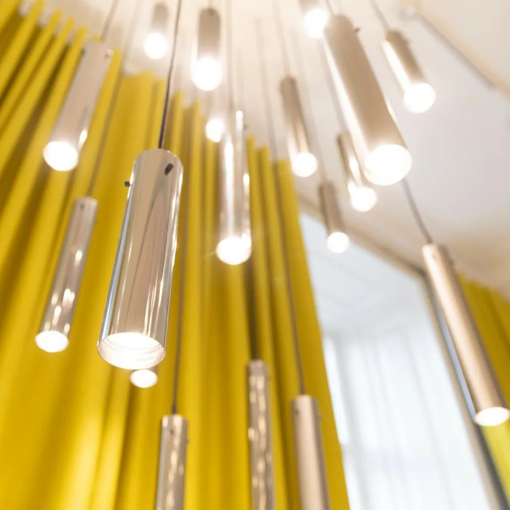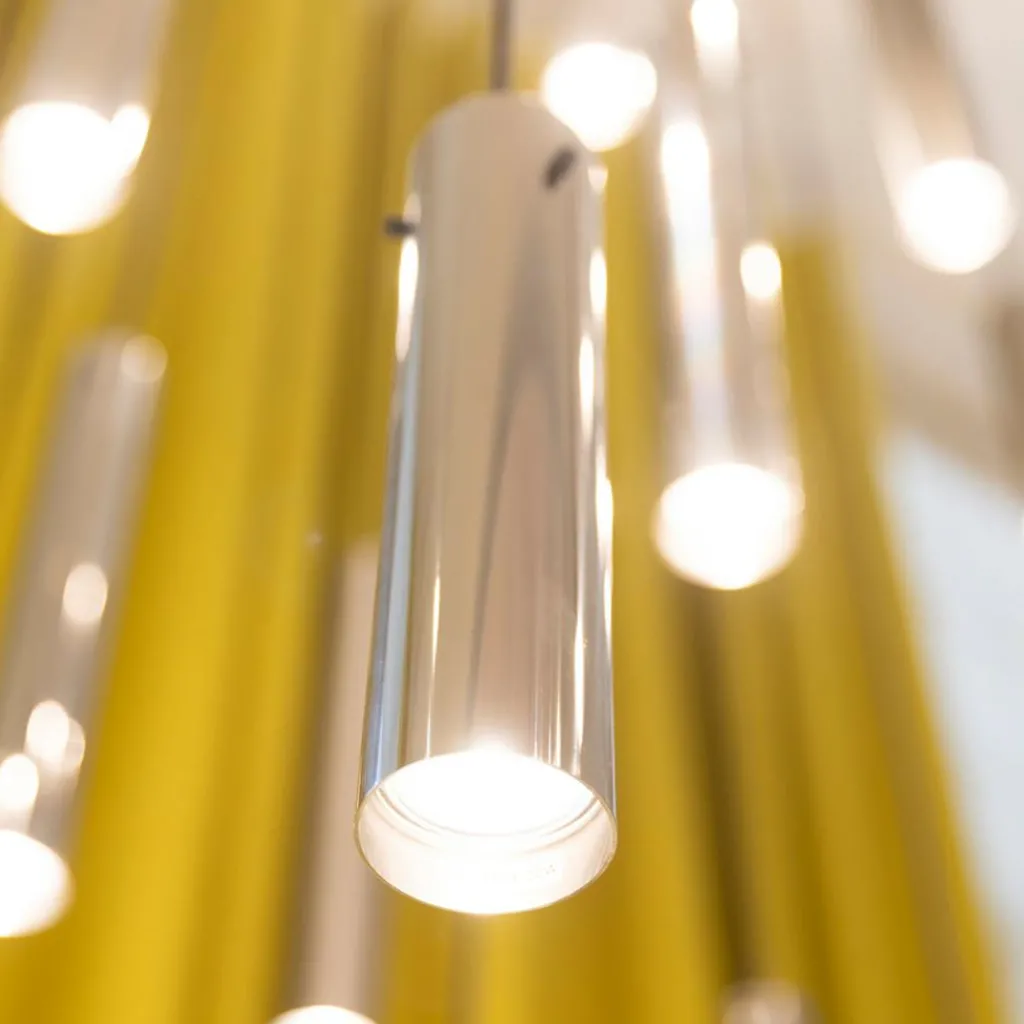 Auch bei der FM 2014 Pendelleuchte H 24cm beschränkt sich das Design auf das Wesentliche: Sie besteht aus ultraschlanken Leuchtschirmen, die senkrecht montiert sind. Durch die Gestaltung in Form eines Zylinders wird der Lichtstrahl punktuell nach unten geleitet. Die FM 2014 Pendelleuchte H 24cm sorgt über dem Esstisch für perfekte Lichtverhältnisse bei jeder Mahlzeit oder bei angeregten Gesprächen. Das matte Pendel wird, auch wenn die FM 2014 Pendelleuchte H 24cm nicht eingeschaltet ist, zum Kunstobjekt. Gerne wird das Modell in Gruppen aufgehängt, es macht sich jedoch auch gut als einzelner Spot.