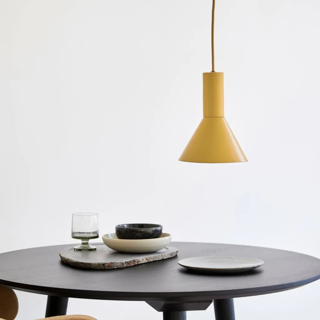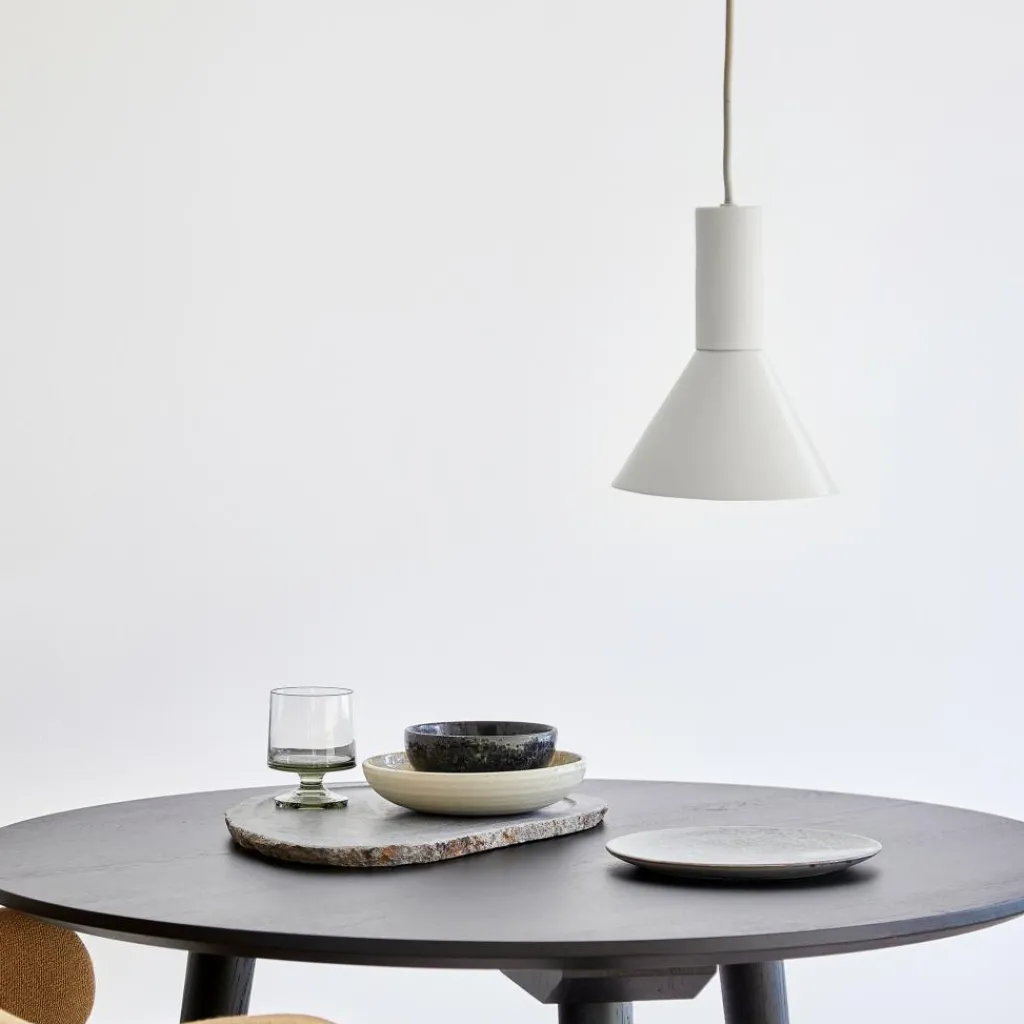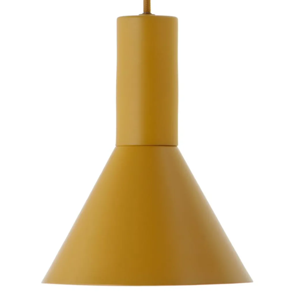Das ausbalancierte Spiel der Lyss Pendelleuchte aus zylindrischem Oberteil und konisch zulaufendem Schirm verleiht ihr eine ruhige grafische Präsenz – ideal für moderne Interieurs. Gefertigt aus metallbeschichtetem Eisen, ist das Innere des Schirms weiß lackiert, um das Licht optimal zu reflektieren und eine angenehme, direkte Beleuchtung zu gewährleisten. Das Stoffkabel ist 300 cm lang, greift farblich den Ton des Schirms auf und schafft so ein harmonisches Gesamtbild. Zudem ist dank der großen Länge die Lyss Pendelleuchte damit auch für besonders hohe Räume geeignet. Ob in der Küche, über dem Esstisch oder als Zimmerbeleuchtung in Schlaf- oder Kinderzimmer – die Lyss Pendelleuchte ist für eine Vielzahl von Räumlichkeiten geeignet und bringt stilvolle Eleganz in die Räume. Mit einem Durchmesser von 18 cm, einer Höhe von 23 cm und einem Gewicht von 0,8 kg eignet sich Lyss sowohl als Solitär über Beistelltischen oder Leseecken als auch in Gruppen über langen Esstischen oder Kücheninseln. Der passende Baldachin aus Metall hat einen Durchmesser von 10 cm und ist 2 cm hoch. Er ist farblich abgestimmt auf die Leuchte, rundet das minimalistische Erscheinungsbild ab. Ausgestattet mit einer E27-Fassung, lässt sich die Lichtquelle individuell wählen – ganz nach Lichtstimmung und Bedarf. Ein Leuchtmittel ist nicht Teil des Lieferumfangs.