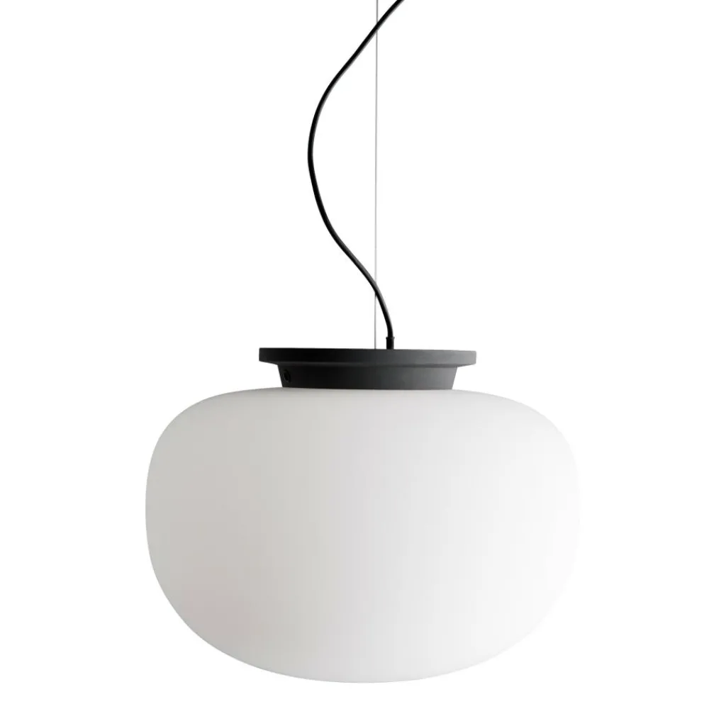 Die Supernate Pendelleuchte Ø 38cm wurde von Jonas Wagell für die Marke Frandsen entworfen. Sie gehört zu einer Reihe von Designleuchten, die sich durch ihre ellipsoide Formgebung von klassischen Kugelleuchten unterscheiden. Ihre unkonventionelle Konstruktion erlaubt verschiedene Aufhängungsvariationen.