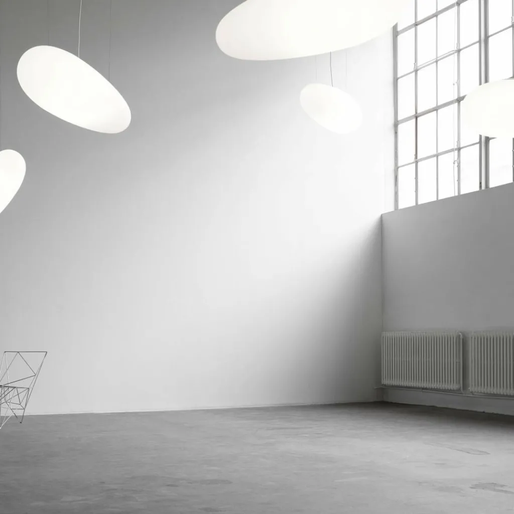 Auch wenn sie gerade nicht eingeschaltet ist, wird die AVION™ Pendelleuchte in jedem Raum zum Blickfang. Da sie nur an filigranen Kabeln an der Decke befestigt wird, scheint sie wie eine Wolke im Raum zu schweben. Bei jedem Windhauch wechselt sie die Richtung und sie sieht aus jeder Perspektive ein wenig anders aus. Die AVION™ Pendelleuchte wird aus leichtem Polyethylen hergestellt. Aus dem ovalen Leuchtenschirm dringt diffuses Licht in die Außenwelt. Die AVION™ Pendelleuchte kann alleine aufgehängt oder in Gruppen drapiert werden. Somit wird sie in jedem Wohnzimmer, im Veranstaltungsbereich, in einer Hotellobby oder einem Restaurant zum Hingucker.