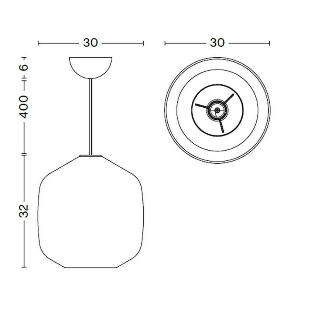 Der mundgeblasene Glasschirm der Buoy Glass Pendelleuchte Ø 30 cm zeichnet sich durch eine organische SilHOUEtte aus: Rundlich mit fließenden Linien wird der Schirm am oberen Ende schmaler. So entsteht eine leicht angedeutete Tropfenform, die von der geraden, breiten Formsprache gekonnt umgedeutet wird. Das opalweiße Glas sorgt für eine gleichmäßige Lichtstreuung und ein stimmungsvolles und gerichtetes Licht. Dank ihres zeitlosen Designs fügt sich die Pendelleuchte mühelos in verschiedene Wohnbereiche ein – ob als stilvolle Einzelleuchte über einem Esstisch oder als Teil eines Arrangements über einer Kücheninsel oder einem Tresen. Ihr zurückhaltender Look macht sie sowohl für private als auch für öffentliche Räume wie Cafés oder Hotels ideal. Der vom mundgeblasenen Glasschirm verdeckte Schirmhalter ist aus spritzgegossenem PC/ABS, das zu 50 % recycelt ist. Das geflochtene Gewebekabel hat eine Silikonisolierung und ist 400 cm lang. So kann die Buoy Glass Pendelleuchte Ø 30 cm auch in sehr hohen Räumen eingesetzt werden und die Höhe der stilvollen Lichtquelle flexibel bestimmt werden. Ein Baldachin verdeckt den elektrischen Anschluss der Leuchte und sorgt für ein elegantes Gesamtbild. Für die Buoy Glass Pendelleuchte Ø 30 cm wird ein E27-Leuchtmittel benötigt, das nicht im Lieferumfang enthalten ist. Der Schirm lässt sich bei Bedarf leicht reinigen. Mit einem Durchmesser von 30 cm und einer Höhe von 32 cm bringt diese Pendelleuchte stilvolle Eleganz in jede Umgebung. Sie wiegt 3,3 kg.