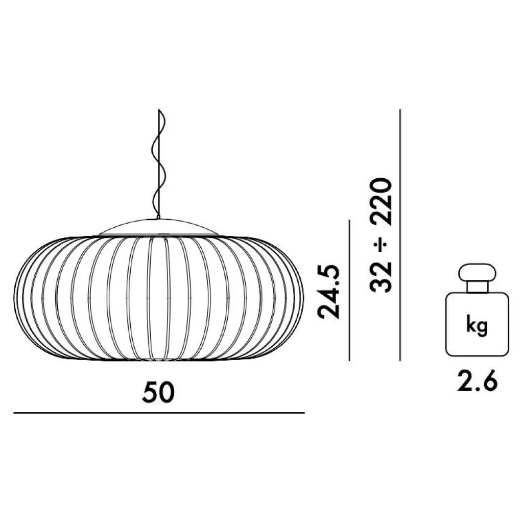 | Abmessungen | Höhe: 24.5cm Durchmesser: 50cm Kabellänge: 220cm Abhängungslänge: 252cm Durchmesser Schirm: 50cm |