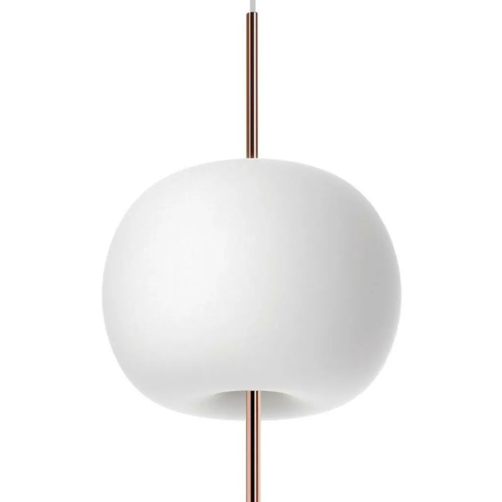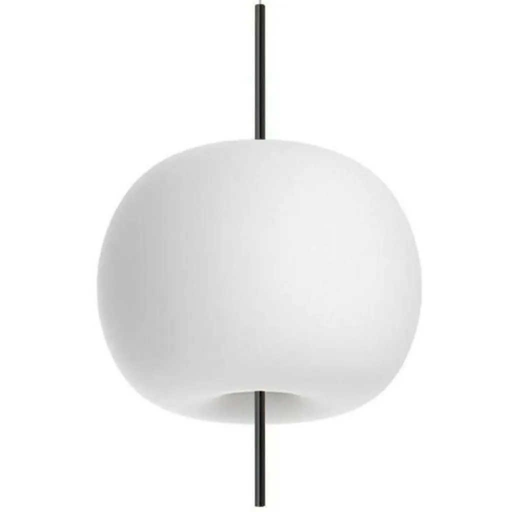 Der Name der Kushi XL Pendelleuchte – der japanische Begriff „Kushi“ bedeutet zu Deutsch „Spieß“ – bezeichnet auch die Form der Pendelleuchte, deren an einen Apfel erinnernder Leuchtenkopf von einem Spieß aus Metall zu durchbohrt werden scheint. Sie ist Teil einer Kollektion von weiteren Leuchten und in drei unterschiedlichen Farbvarianten erhältlich. Die formschöne Leuchte wiegt 5,9kg, besteht aus Metall und zweischichtig mundgeblasenem Opalglas. Die Leuchte hat die Abmessungen von 64,5cm in der Höhe und einen Durchmesser von 43cm. Der Durchmesser des Baldachins beträgt 12,5cm und die Länge des Kabels 180cm. Die beiden für den Betrieb der Kushi XL Pendelleuchte erforderlichen Leuchtmittel mit der Fassung E27 können gleich mitbestellt werden. Das damit erzeugte warm-weiße Licht wird in alle Richtungen ausgestrahlt und kann über einen externen Dimmer auf die gewünschte Helligkeit eingestellt werden. Die Kushi XL Pendelleuchte ist nur für den Gebrauch im Innenbereich geeignet und kommt z.B. über einem Esstisch oder in der Küche am besten zur Geltung. Für die Reinigung werden ein feuchtes Tuch und ein Glasreiniger empfohlen.