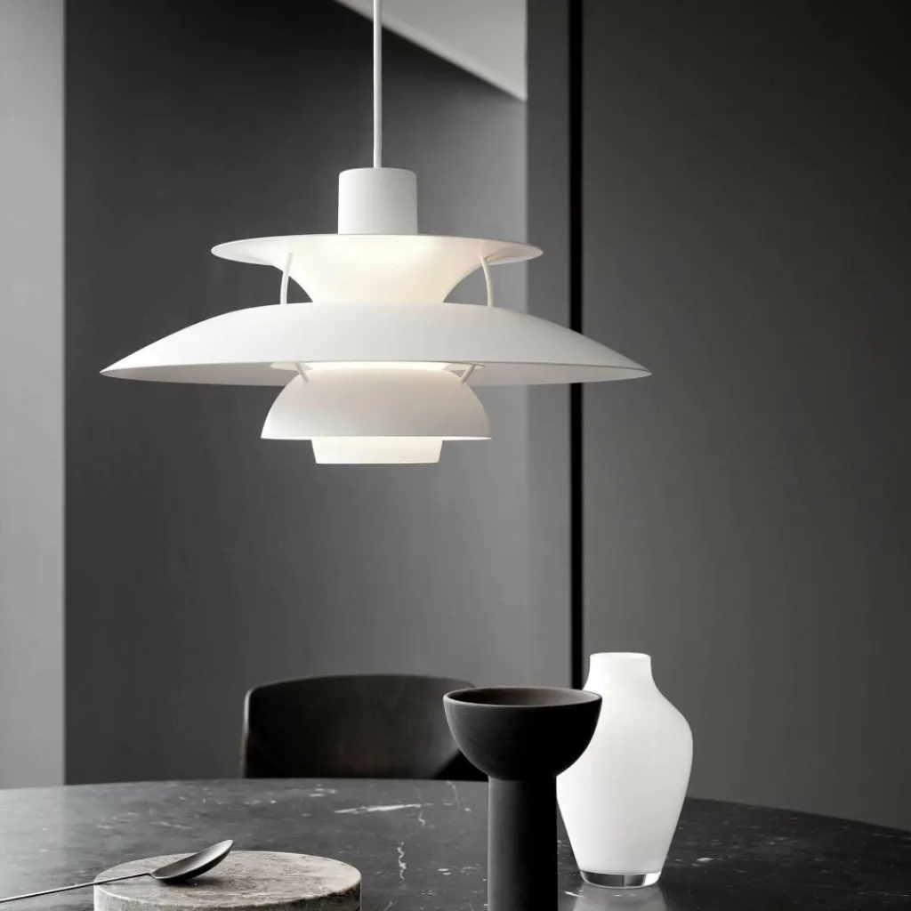 Die PH 5 Monochrome Pendelleuchte wurde von dem Designer Poul Henningsen exklusiv für die Marke Louis Poulsen entworfen. Unter dem Motto „Form folgt Funktion“ kreiert das Label in Kooperation mit namhaften Designern unikale Leuchten, die nicht nur höchsten Qualitätsansprüchen gerecht werden, sondern auch Ikonen des Designs darstellen.