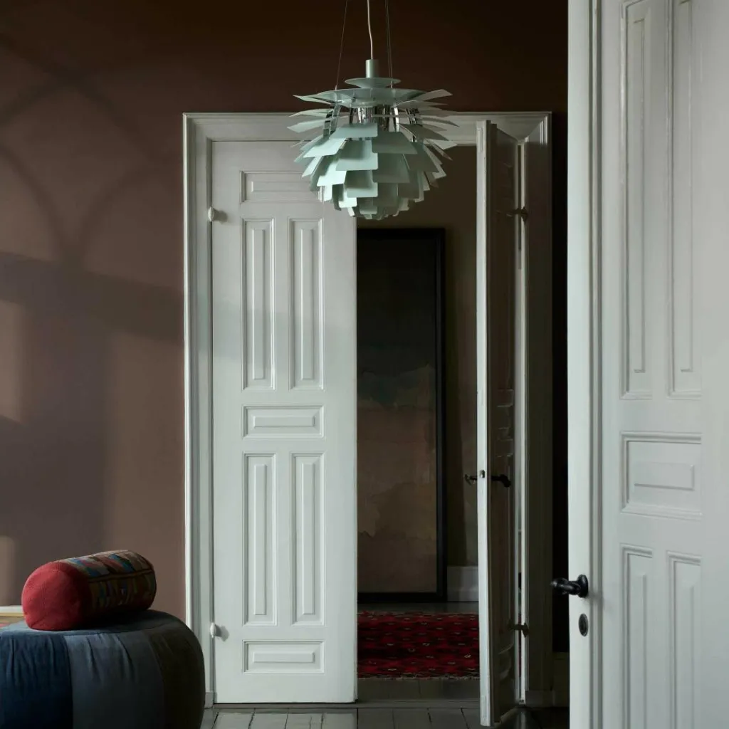 Neben der PH Artichoke Pendelleuchte Ø60cm ist auch ein Modell mit einem Durchmesser von 48 cm erhältlich. Des Weiteren umfasst die PH-Serie der Marke Louis Poulsen Tisch-, Steh- und Wandleuchten.