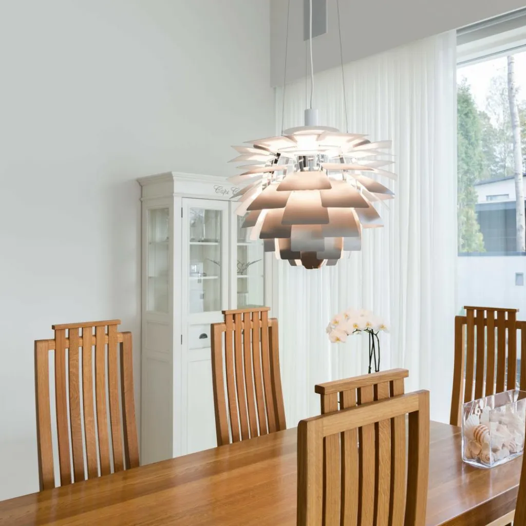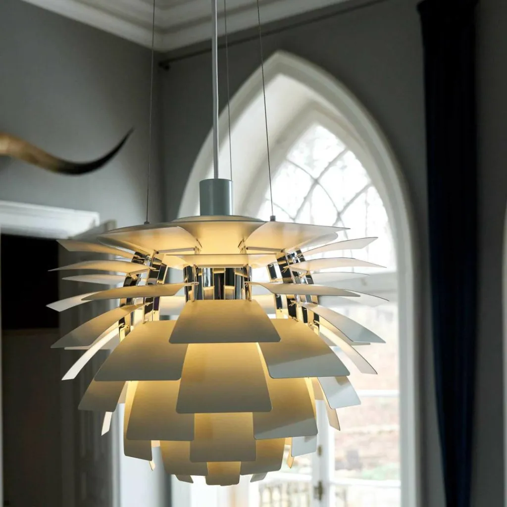 Die PH Artichoke Pendelleuchte Ø60cm wurde von Paul Henningsen für die Marke Louis Poulsen entworfen. Sie entstammt dem Entwurf einer eleganten Leuchtenserie im Rahmen der Pariser Weltausstellung 1925. In ihrer jetzigen Form wurde der Designklassiker erstmals 1958 in einem Restaurant in Kopenhagen eingesetzt.