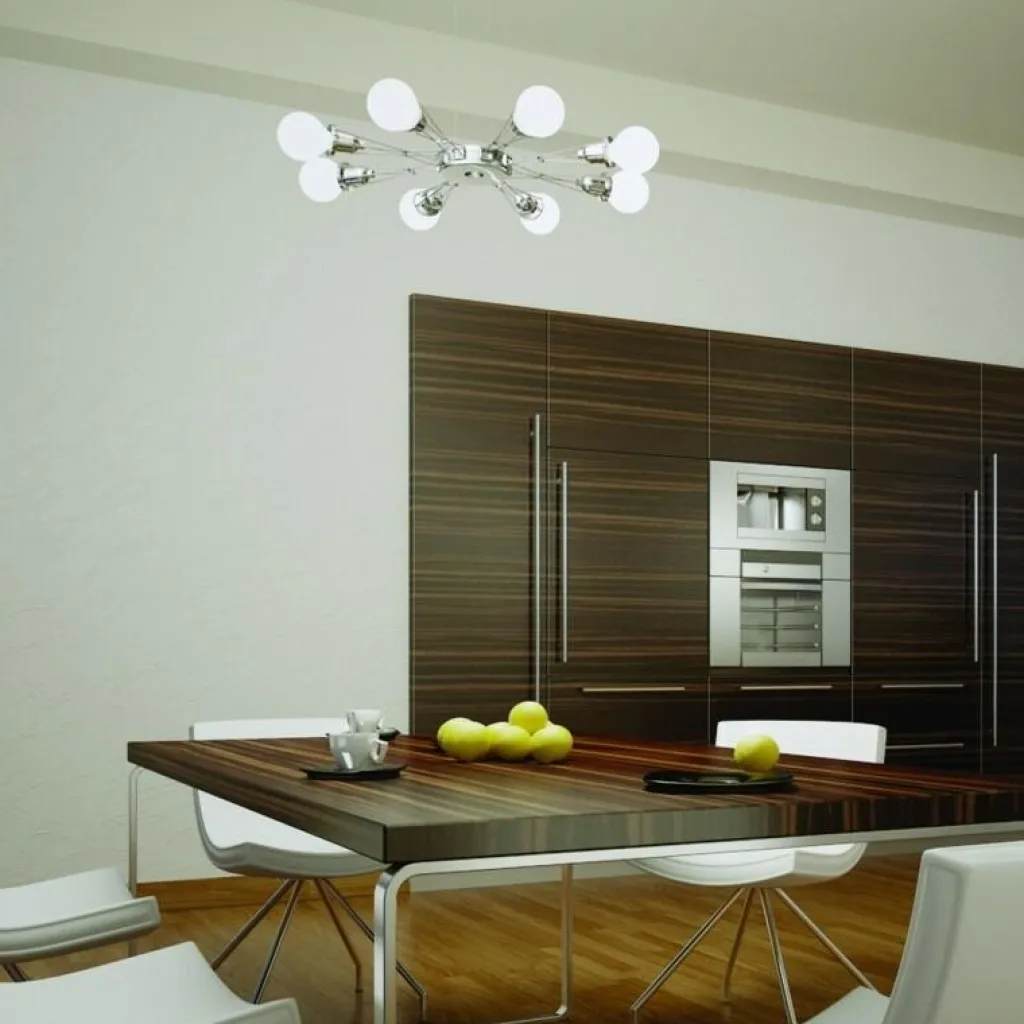 Bei der Matrix Otto Pendelleuchte sind alle acht Arme flexibel verstellbar. Der Name lehnt sich an die Matrixscheinwerfer von Autos an, die für eine variable und flexible Lichtverteilung sorgen. Der Beiname Otto deutet auf die Zahl der Arme hin. Sie sind um 90° schwenkbar. Aus derselben Serie sind auch Pendel- und Deckenleuchten mit vier Armen zu haben. Als Basis dient eine dicke Scheibe, von der die filigranen Arme ausgehen. Die Matrix Otto Pendelleuchte wird aus Stahl mit Aluminiumlegierung hergestellt. Für die Arme verwendet der Designer Edelstahl. Wegen ihres futuristischen Designs passt die Matrix Otto Pendelleuchte besonders gut zu moderner Einrichtung. Sie eignet sich für das private Wohn- oder Esszimmer, für Konferenzräume und Restaurants. Sie lässt sich mit einem externen Dimmer kombinieren.