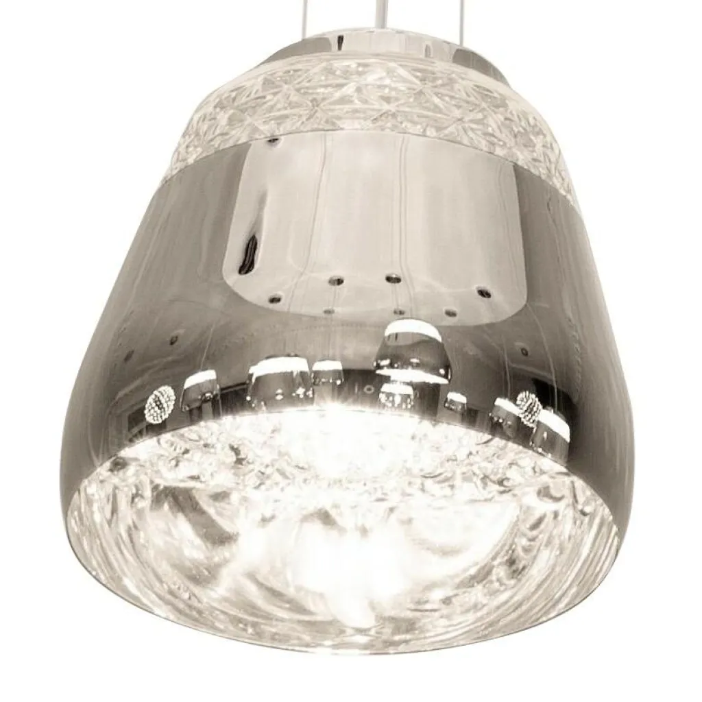 Der holländische Designer setzt mit der Baby Valentine Pendelleuchte neue Maßstäbe bei der Innenausstattung. Bei der Produktion besinnt sich Wanders auf alte Handwerkstradition: Die Leuchte besteht aus Glas und ist mundgeblasen. Die Außenseite der Baby Valentine Pendelleuchte ist zum Großteil lackiert, nur der oberste Teil ist transparent gestaltet. Es gibt die Baby Valentine Pendelleuchte in verschiedenen Farben. Die Innenseite ist glänzend gestaltet in Gold- oder Chromton. So reflektieren sich die Lichtstrahlen in verschiedenen Winkeln und treten blendfrei unten aus. Der Diffusor besteht ebenfalls aus Glas. Da darin Blumenornamente eingearbeitet sind, zaubert die Baby Valentine Pendelleuchte verspielte Lichteffekte in den Raum. Jedes Modell ist ein wenig anders und daher ein Unikat.