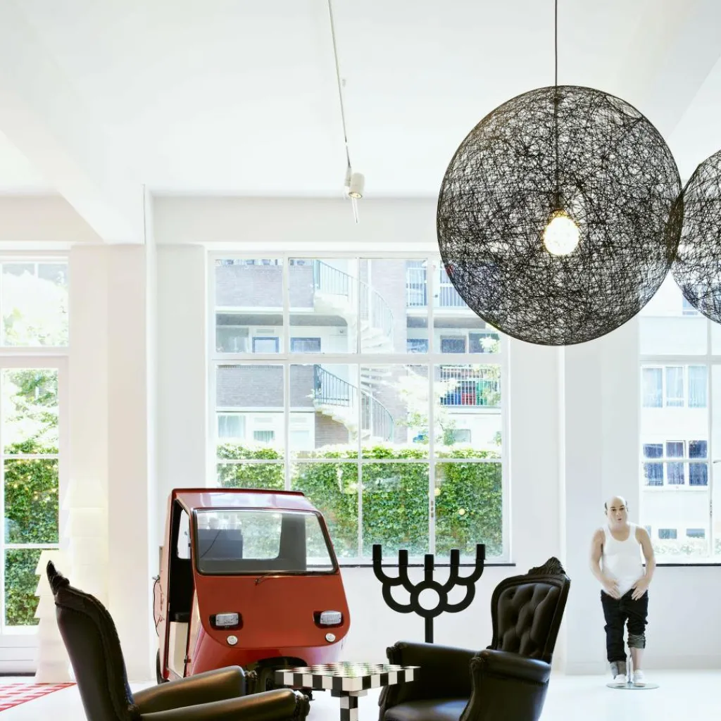 Die Random Light II M Pendelleuchte wurde von Bertjan Pot für die Marke Moooi entworfen. Der außergewöhnliche Leuchtenschirm zieht in jedem Raum Blicke auf sich: Er ist nach einer denkbar einfachen Technik gefertigt, deren Entwicklung jedoch mehrere Jahre in Anspruch nahm.