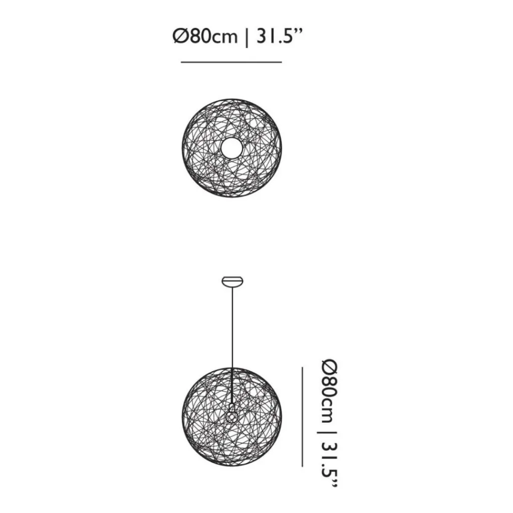 Die Random Light II M Pendelleuchte weist einen Durchmesser von 60 cm auf. Mit einem 400 cm langen Kabel wird sie an der Decke montiert. Die 6 kg schwere Leuchte benötigt ein Leuchtmittel mit einer Fassung E27. Es kann unter Zubehör mitbestellt werden. Sowohl in eleganten Restaurants als auch in Wohn- und Schlafräumen wird die Random Light II M Pendelleuchte gerne eingesetzt.