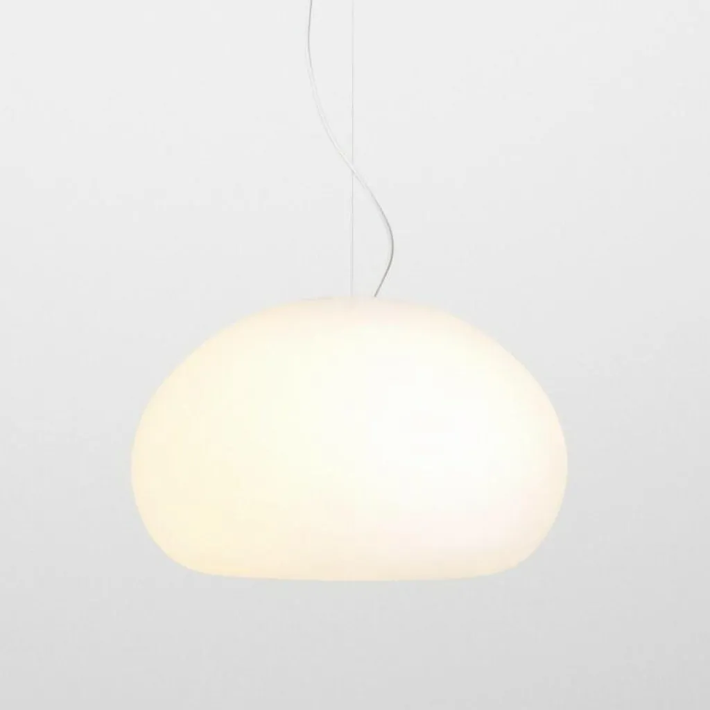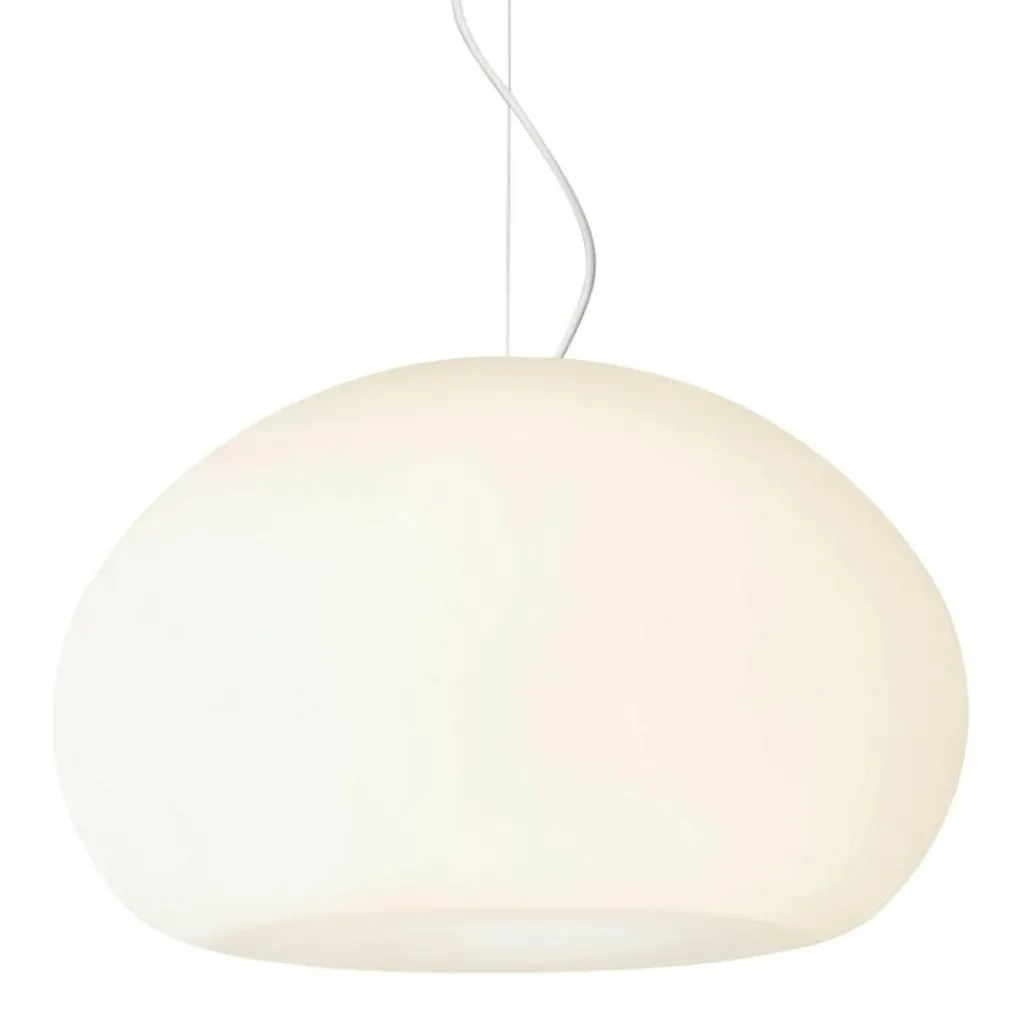 Die weiche, runde Form der Fluid macht sie zu einem dezenten Stilelement, das sich sowohl mit modernen als auch klassischen Einrichtungsstilen kombinieren lässt. Das hochwertige mattweiße Glas des Lampenschirms fügt sich mit seinem natürlichen Charme in jedes Wohnambiente ein. Dabei entfernt sich die Fluid von den geometrischen Formen typischer Pendelleuchten. Ihre dezent unregelmäßige Silhouette wirkt je nach Blickwinkel so veränderlich wie Wasser. Gleichzeitig sorgt sie für eine höhere Lichtintensität auf der Unterseite der Lampe und bringt so Natur und Wärme in Ihren Wohn- oder Arbeitsraum. Sie können die Leuchte als solitäre Hauptlichtquelle einsetzen oder auf Wunsch kleine Kunstwerke durch Kombination mehrerer Leuchten kreieren. Die Fluid Pendelleuchte L Ø42cm wird so vielfältig einsetzbar, egal ob ganz praktisch über Ihrem Esstisch, dem Arbeitsplatz oder als Blickfang mitten im Raum.