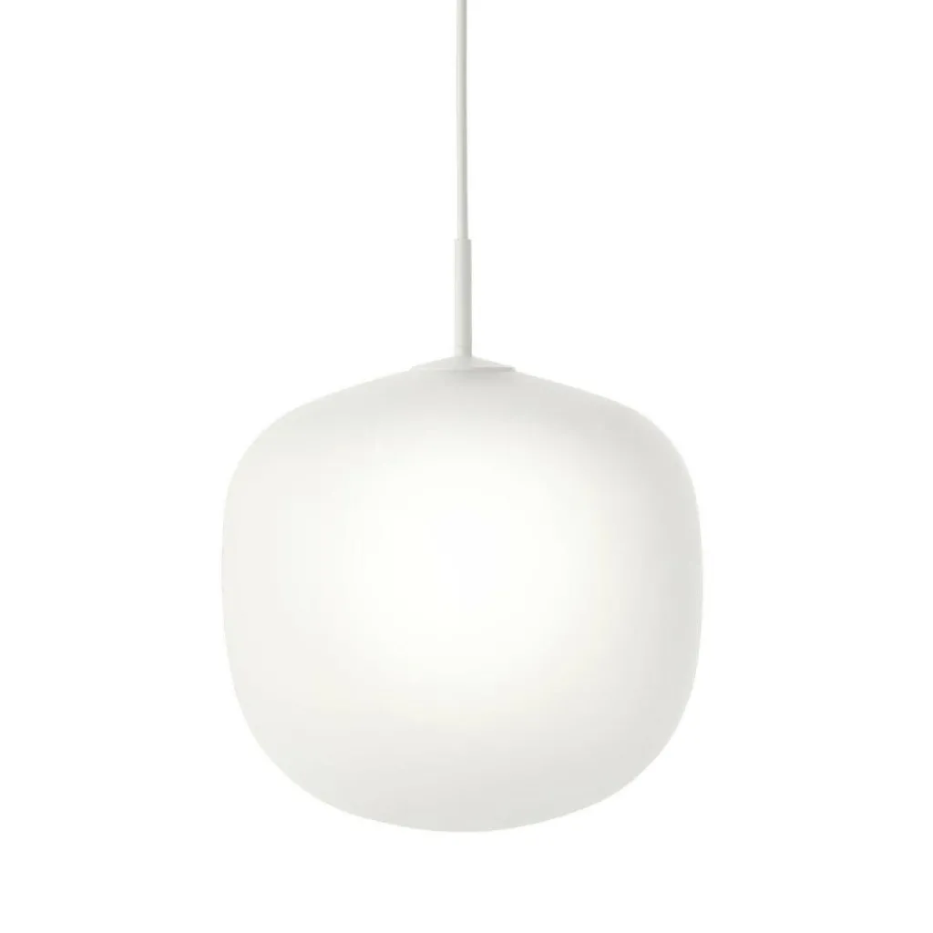 Die Rime Pendelleuchte Ø 37cm wurde von TAF Studio für die Marke Muuto entworfen. Die beiden Designer Gabriella Gustafson and Mattias Ståhlbom aus Stockholm bringen frischen Wind in Alltagsgegenstände. Die Rime Pendelleuchte Ø 37cm erinnert in ihrer Form an eine Eichel. Damit passt die Leuchte perfekt in das Portfolio der Marke Muuto, die für eine außergewöhnliche Interpretation typisch skandinavischen Designs bekannt ist. Für den Lampenschirm verwendete TAF Studio mundgeblasenes Glas, in das eine spezielle Oberflächenstruktur gearbeitet wurde. Durch das sandgestrahlte Material dringt warmes Licht, das jedem Raum wohnliches Ambiente verleiht. Ein wenig erinnern die Beleuchtung an einen sonnigen Wintertag, wenn sich Sonnenstrahlen in Eis und Raureif spiegeln. Verbunden ist der Schirm mit einem 4 m langen Textilkabel, das individuell angepasst werden kann. Dank des schlichten Entwurfs ist die Rime Pendelleuchte Ø 37cm mit jedem Einrichtungsstil kombinierbar: Der Leuchtkörper passt zum gemütlichen Landhausstil, minimalistischer Möblierung oder modernem Design. Sie verleiht dem Esszimmer edles Ambiente, erhellt Konferenztische oder kann in Reihen angeordnet den Flur oder die Küche ausleuchten. Das außergewöhnliche Modell besticht gleichermaßen mit herausragender Optik und ausgezeichneter Qualität. Die Lampe ist darüber hinaus pflegeleicht: Der Schirm der Rime Pendelleuchte Ø 37cm lässt sich einfach mit einem feuchten Tuch säubern.