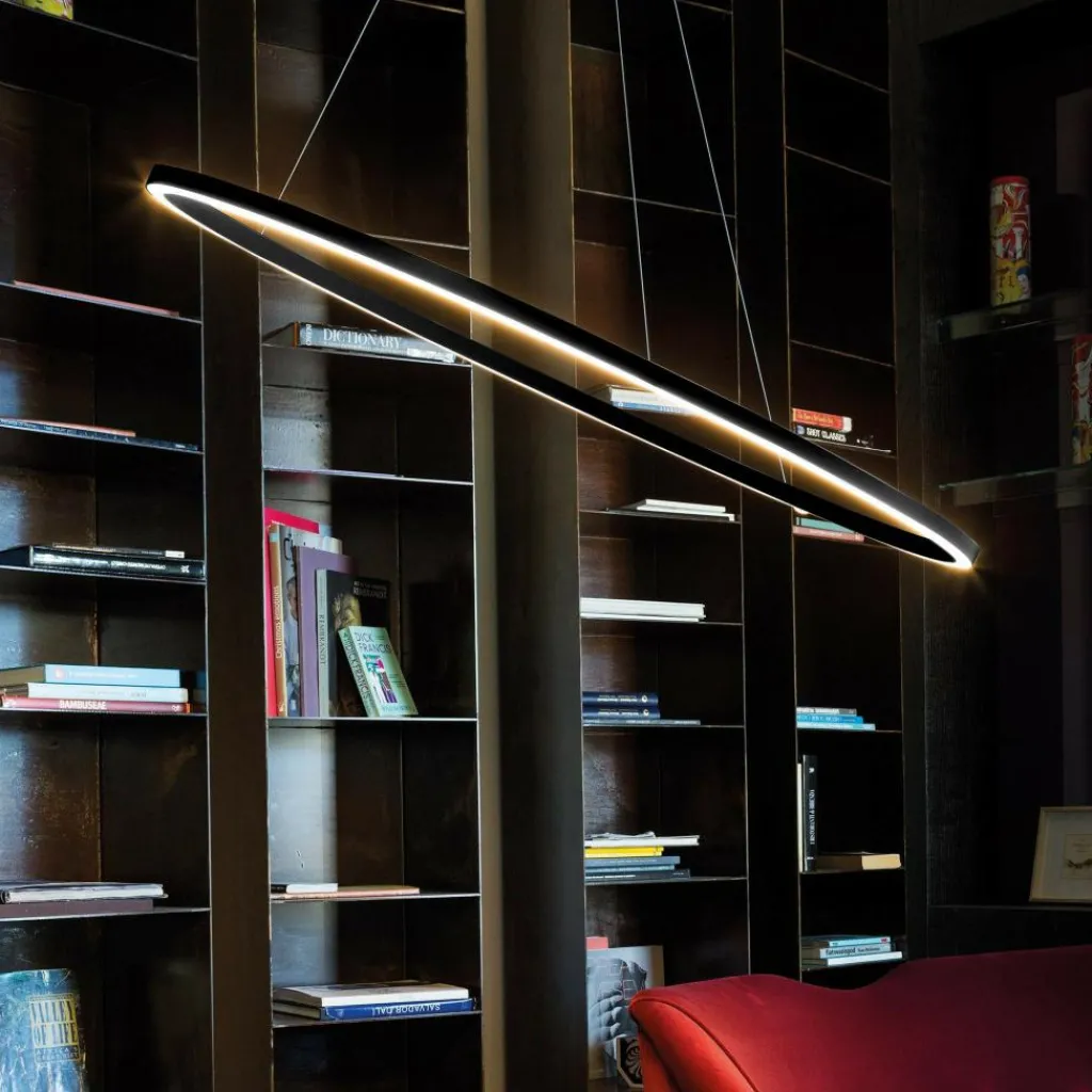 Bei dieser raffinierten Hängeleuchte ist auf den ersten Blick nicht erkennbar, dass die filigrane Ellipsenform nicht nur ein modernes Kunstwerk ist, sondern auch ein großartiges Lichtobjekt. Durch die kaum sichtbare Aufhängung scheint die Leuchte fast schwerelos in der Luft zu stehen. Das extrem kompakte und hochmoderne LED-Leuchtmittel wurde komplett in dem schmalen Korpus versenkt. Es ist wartungsfrei, ein Wechsel ist nicht notwendig.