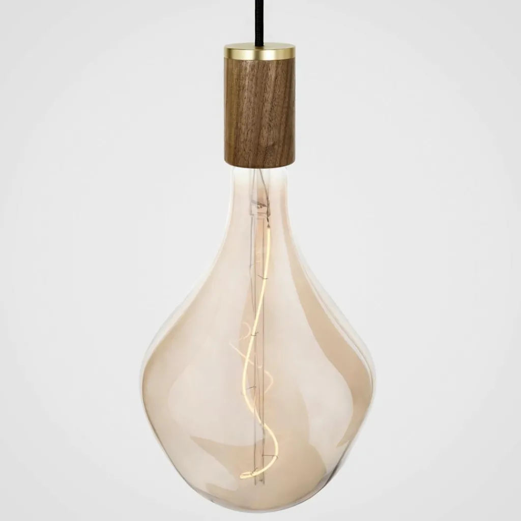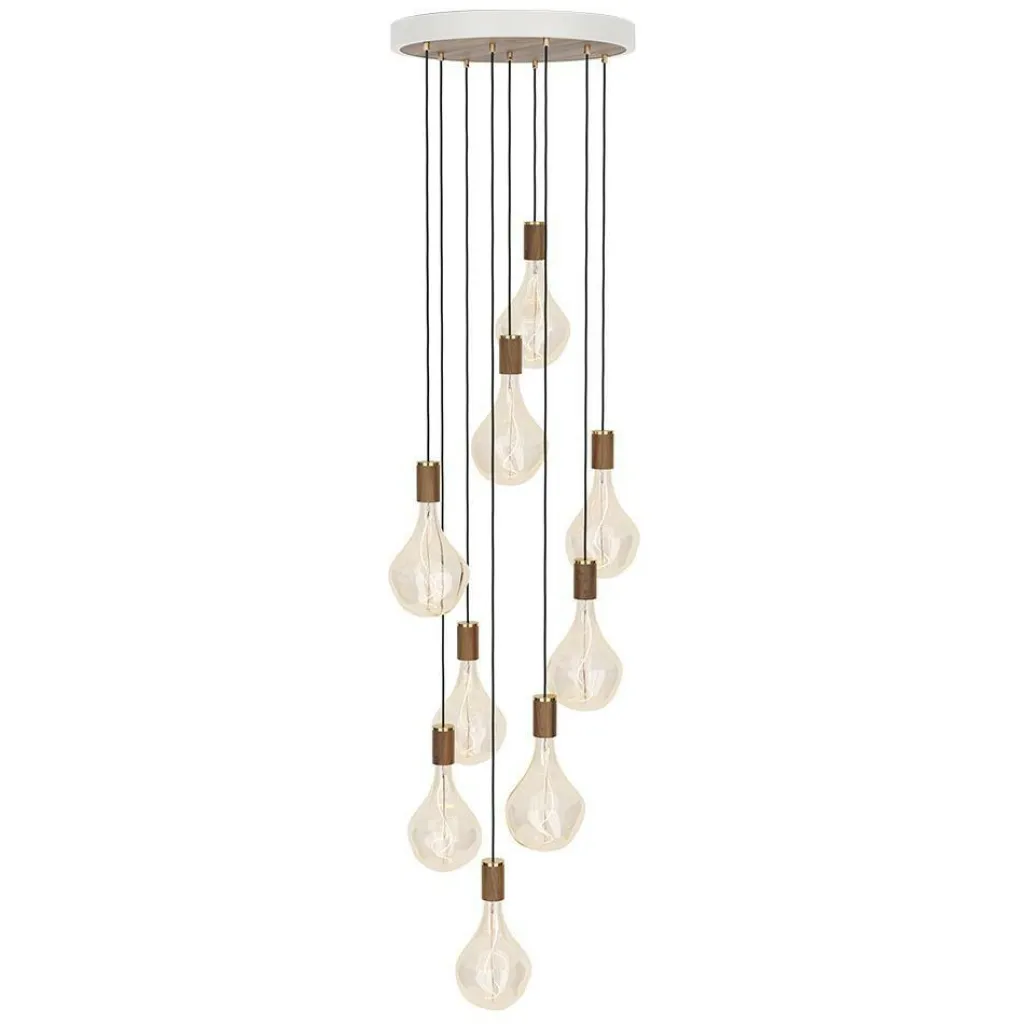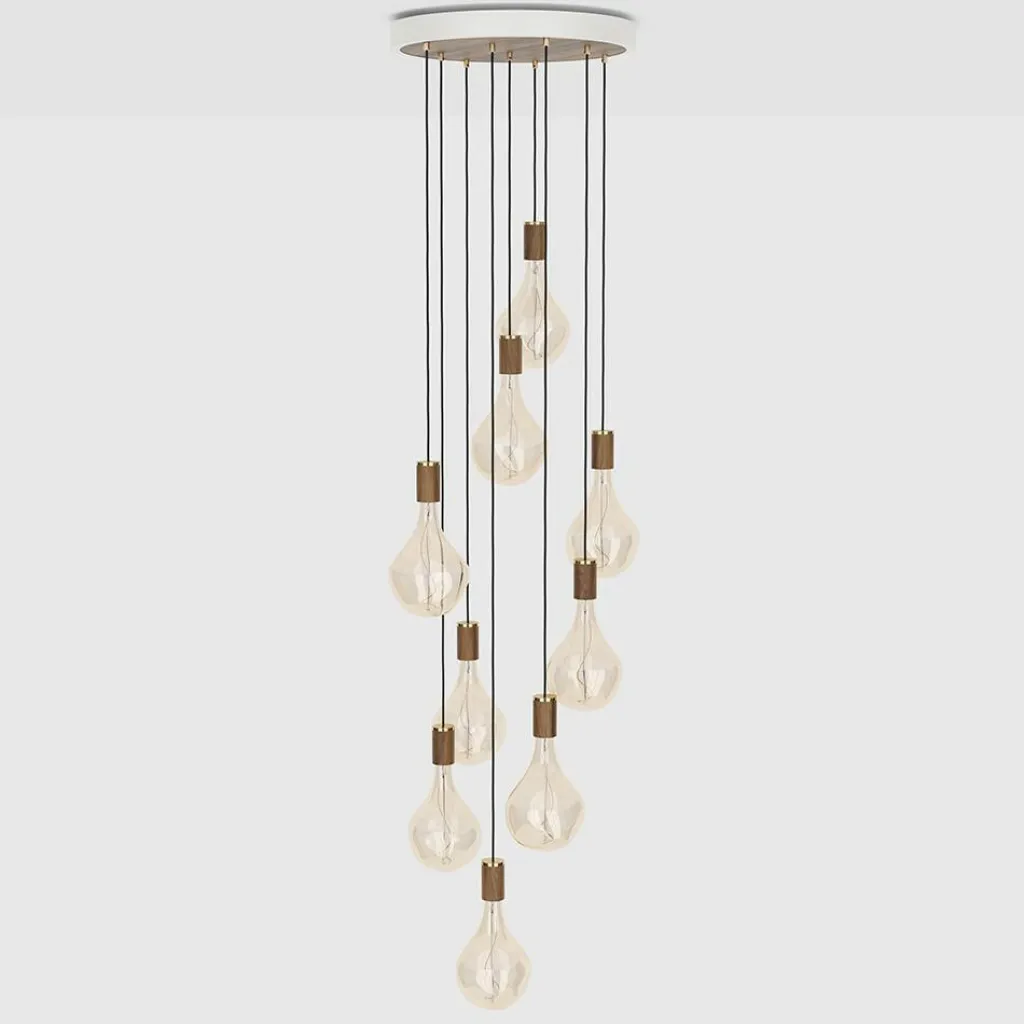 Die britische Marke setzt sich auf ganzer Linie für den Umweltschütz ein: Die Leuchtmittel sind mit einer Betriebsdauer von bis zu 15.000 Stunden besonders langlebig und energiesparend. Darüber hinaus pflanzt das Unternehmen pro 200 verkaufter Produkte zehn Bäume. Holz findet in der Walnut Nine Pendant with Voronoi II Pendelleuchte für die zylinderförmigen Halterungen der Leuchtmittel Verwendung. Der Baldachin zur Deckenbefestigung ist aus pulverbeschichtetem Stahl und Holz gefertigt. Zum Hingucker werden jedoch die neun im Lieferumgang enthaltenen Leuchtmittel mit E27-Fassungen. Sie zeichnen in der Natur vorkommende Voronoi-Muster nach, die zum Beispiel in Baumkronen zu finden sind. Hergestellt werden die Leuchtmittel aus mundgeblasenem Glas, in der Mitte ist ein spiralförmiger Glühfaden zu sehen.