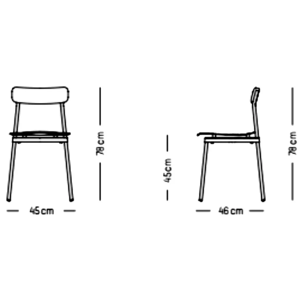 Hergestellt aus extrudiertem und gegossenem Aluminium, das zu einer lasergeschweißten Struktur verbunden wurde, ist die Sitzfläche des Fromme Outdoor Stuhl unsichtbar mit einer Gummipolymeraufhängung am Rahmen befestigt. Dem starren Material zum Trotz wird dadurch ein weicher und ergonomischer Sitz geschaffen. Der Stuhl verfügt über die Abmessungen von B 45 cm x H 78 cm x T 46 cm, einer Sitzhöhe von 54 cm und ist wegen seines Federgewichts von 4 kg leicht zu transportiert.