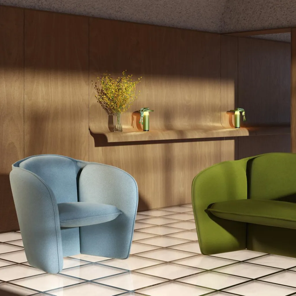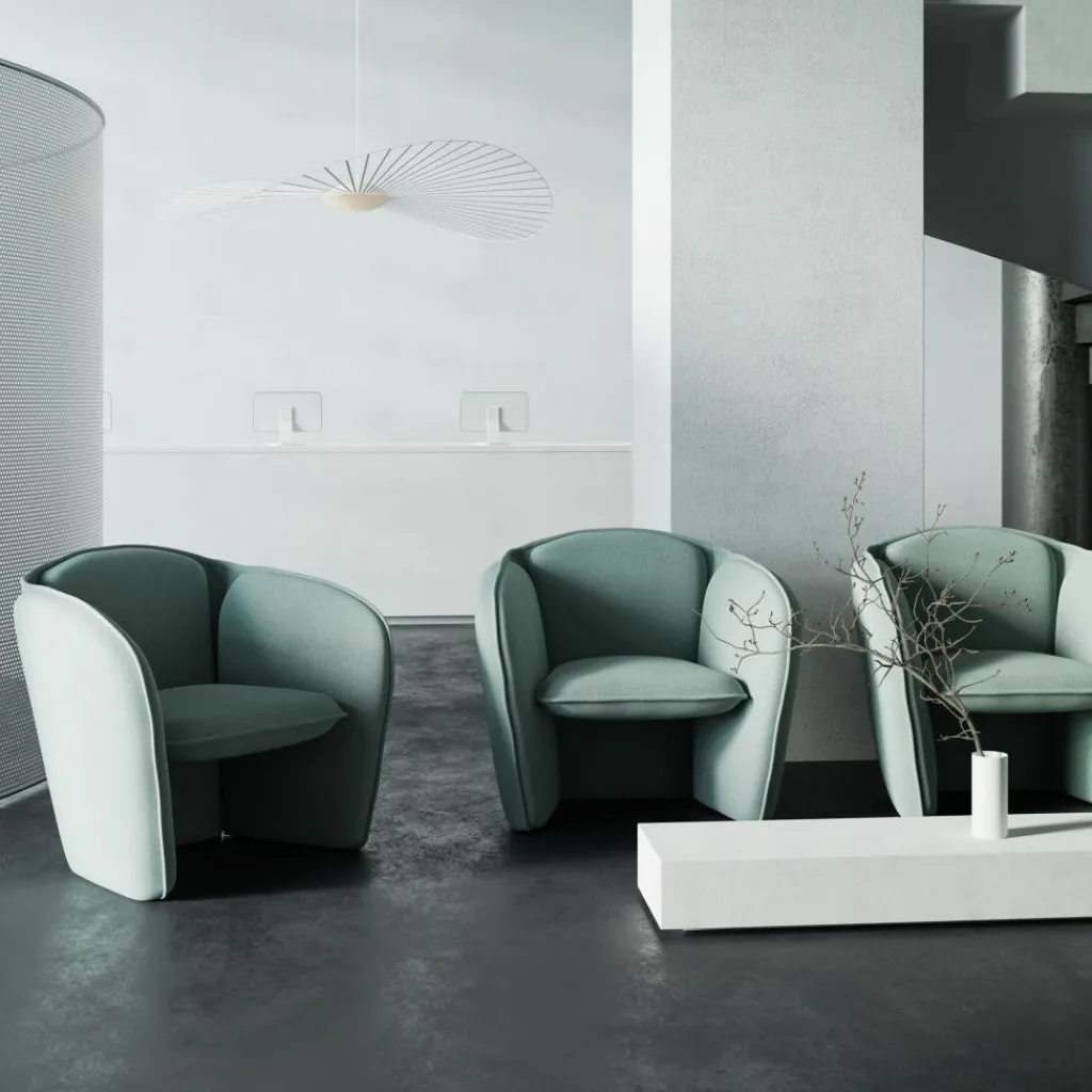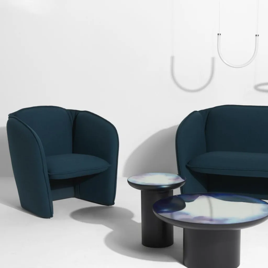 Der Lily Sessel wurde vom Design Studio Färg & Blanche für die Marke Petite Friture entworfen. Die Lily-Kollektion wurde im Jahr 2022 vorgestellt. Passend zum gemütlichen Sessel gibt es ein 2-Sitzer-Sofa.