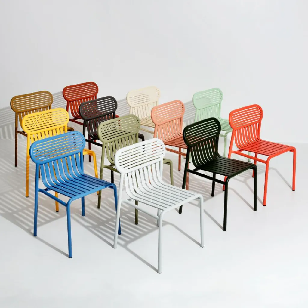 Den formschönen Week-End Gartenarmlehnstuhl gibt es in fröhlichen sowie frechen Nuancen aus gekörnter Epoxidfarbe, wie Ultramarinblau und Matt-Bordeaux oder in den Klassikern Schwarz und Weiß. Mit einer bequemen Sitzhöhe von 40 cm und den praktischen Abmessungen von 66 cm Breite, 77 cm Höhe und 62 cm Tiefe sowie einer Armlehne mit 62 cm und einer Rückenlehne mit 77 cm ist dieser stylishe Stuhl ein verlässlicher und attraktiver Begleiter auf der Terrasse, dem Balkon oder neben dem Pool in Ihrem Garten.