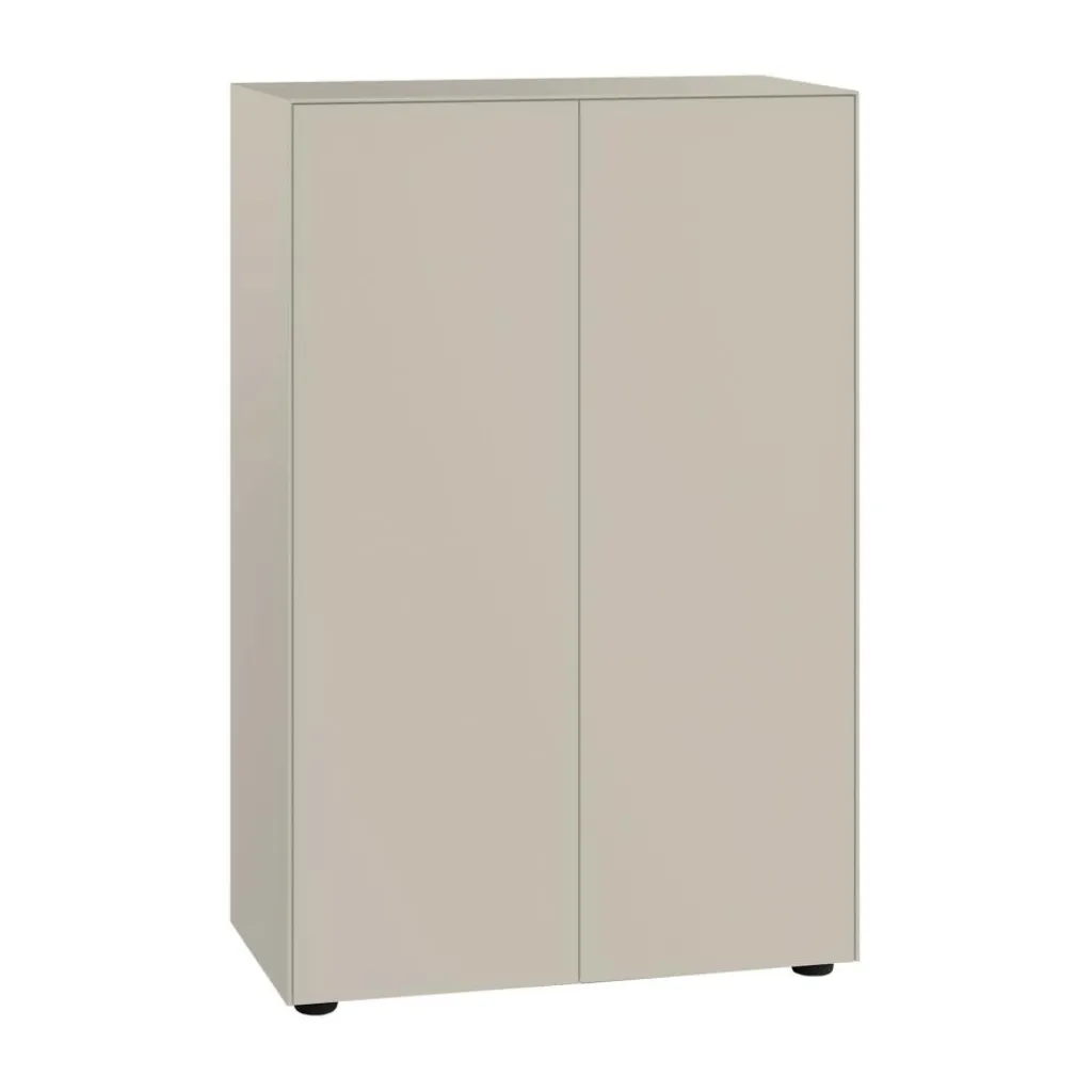 Funktionalität ist nicht das einzige Charakteristikum der Nex Pur 2.0 Türbox 80x100x40cm. Ihre zeitlose Ästhetik passt sich vielen Wohnstilen an, ob im eigenen Zuhause oder im Büro. Der Schrank besticht durch glatte Oberflächen und beschlagfreie Türen, hinter denen sich reichlich Platz zum Verstauen verbirgt. Zwei Fachböden sind im Lieferumfang enthalten, die sich einfach verstellen lassen. Schlicht und markant zugleich präsentiert sich der Korpus der Türbox. Er besteht aus einer dünnen, oben durchgehenden Abdeckplatte und Außenseiten, die akkurat auf Gehrung geschnitten sind, wodurch sie perfekt aufeinanderstoßen und filigrane Schattenfugen kreieren. Das matt lackierte Modell ist in verschiedenen Farben erhältlich und wurde ausschließlich in Deutschland aus MDF hergestellt. Es macht als Einzelstück eine gute Figur, kann aber auch mit anderen Modellen der Nex-Pur-Kollektion kombiniert werden.