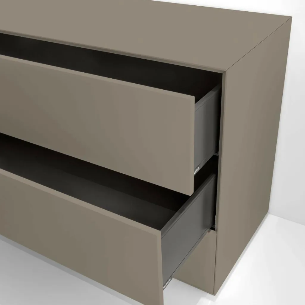 Mit ihren klaren Linien ist die Nex Pur Box Schubkastenbox/Kommode 120x75cm ein elegantes und zugleich praktisches Möbelstück. Die Hersteller setzen bei der Fertigung auf Präzision: Die Elemente sind exakt auf Gehrung geschnitten und Schattenfugen geben dem Modell ein stilvolles Aussehen. Die Nex Pur Box Schubkastenbox/Kommode 120x75cm wird aus MDF gemacht. Die robuste, mitteldichte Holzfaserplatte ist langlebig und pflegeleicht. Das matt lackierte Modell ist mit 2,5 cm hohen Gleitfüßen aus Kunststoff ausgestattet. Sie sichern festen Stand und gleichen Bodenunebenheiten aus. Die Nex Pur Box Schubkastenbox/Kommode 120x75cm wird mit drei Schubläden geliefert. Sie lassen sich durch Berühren der Front öffnen.