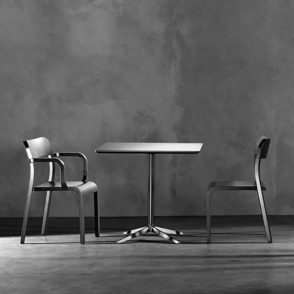 Der Mister X Gartentisch wurde von den Designern Biagio Cisotti und Sandra Laube für den Hersteller Plank entworfen. Das Design-Duo steht für multimediales Design, das seine Basis in der Interaktion hat. Einige der Produkte, die das im italienischen Florenz lebende Designer-Gespann entwickelt hat, sind nicht nur ausgezeichnet worden, sondern gehören sogar in bekannten Museen zur permanenten Kollektion. Unter anderem sind Entwürfe aus dem Hause Cisotti Laube im Triennale Museum in Mailand und im Museum of Design in Kapstadt zu sehen.