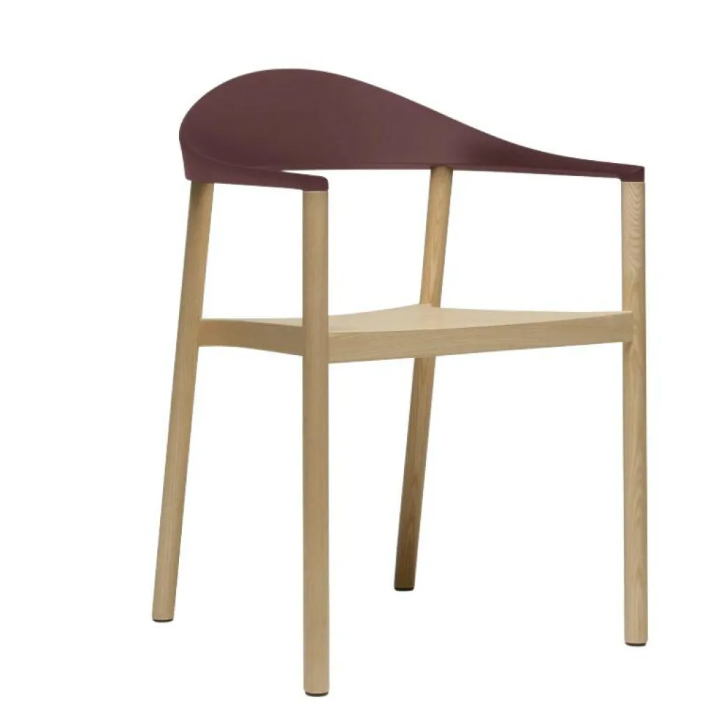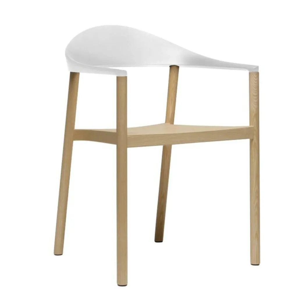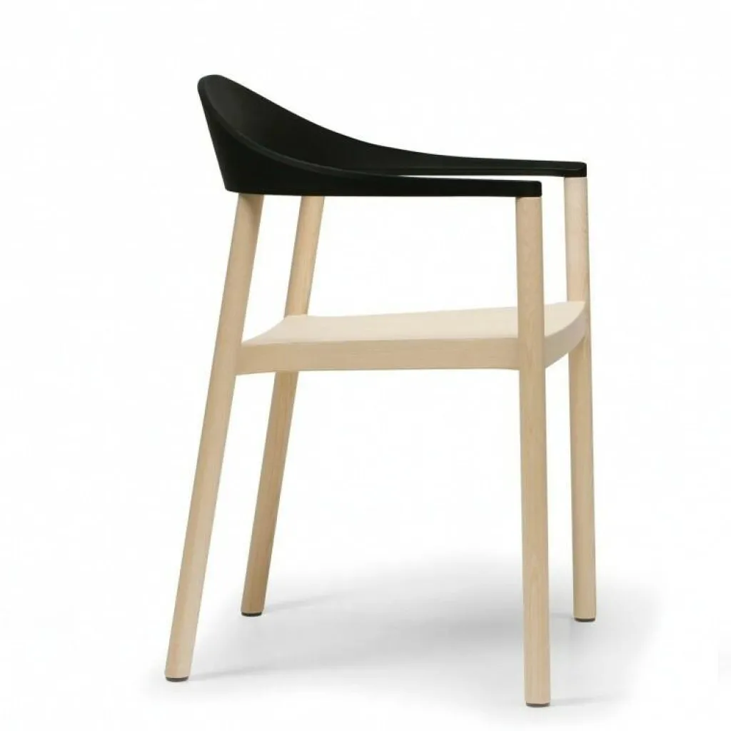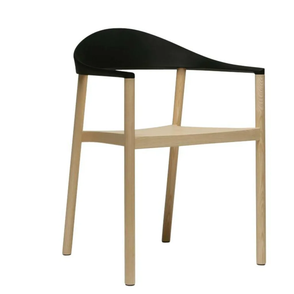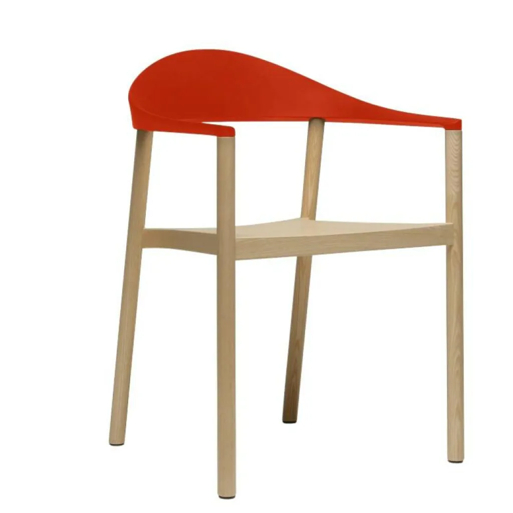 Der Stuhl verbindet die Materialien Holz und Kunststoff-Spritzguss und somit die handwerklichen Wurzeln der Firma Plank mit den charakteristischen Merkmalen des modernen Industriedesigns. Dem Armlehnenstuhl Monza liegt eine reduzierte Holzkonstruktion zugrunde, die sich formal an die Typologie skandinavischer Holzstühle anlehnt.
