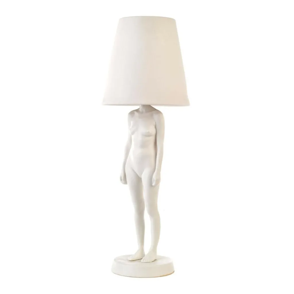 Anstelle eines Kopfes trägt die Hiding Lady Tischleuchte einen Leuchtenschirm. Wird das Modell eingeschaltet, fällt sanftes Licht auf die Schultern der kleinen Statue. Es wirkt ganz so, als ob sich die Dame unter dem Leuchtenschirm verstecken würde. Der helle Körper erinnert deutlich an antike Statuen im alten Rom und Griechenland. Somit wird die Hiding Lady Tischleuchte auch dann zum auffallenden Stilobjekt, wenn sie gerade nicht verwendet wird. Die stilvolle Leuchte macht sich gut auf jedem Schreibtisch. Doch auch auf dem Nachttisch im Schlafzimmer spendet sie stimmungsvolles Licht. Gerne wird sie auch auf Regalen abgestellt. Sowohl in Privaträumen als auch in Boutiquehotels kann die Hiding Lady Tischleuchte verwendet werden.