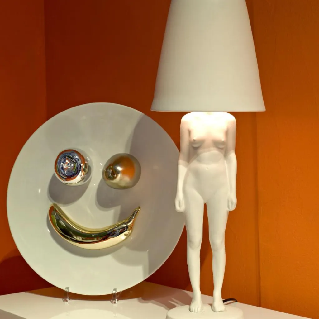 Die Hiding Lady Tischleuchte wurde von Minke van Voorthuizen für die Marke pols potten entworfen. Mit dem Entwurf beweist die Niederländerin Sinn für Humor: Der Sockel ist nämlich wie ein Frauenkörper geformt, wobei der Kopf nicht sichtbar ist.