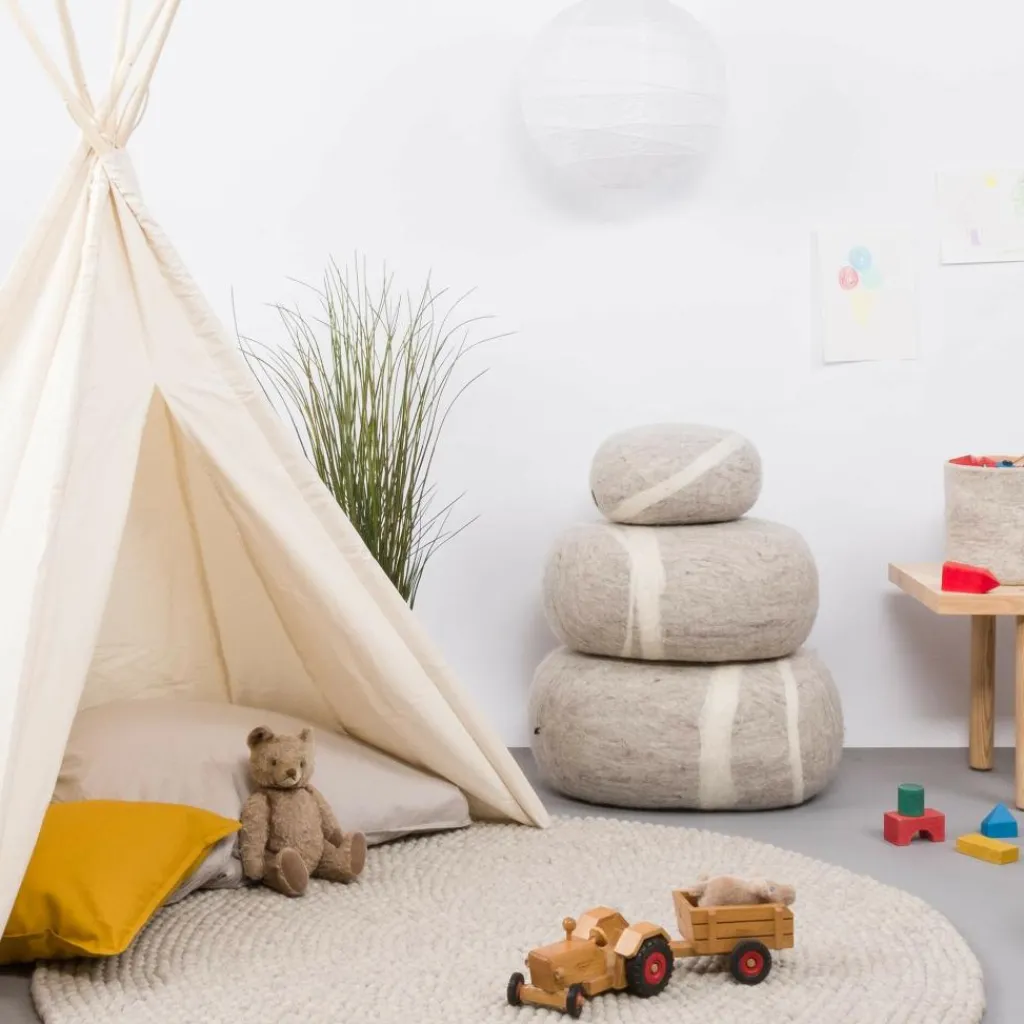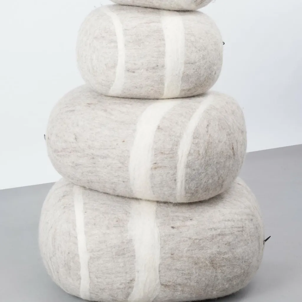 Der Béla Kieselstein Pouf wurde für die Marke myfelt entworfen. Das Sitzobjekt aus Wollfilz erinnert an einen überdimensionierten hellen melierten Kiesel. Als hochwertiges Naturprodukt bildet der Pouf einen auffallenden Hingucker in den eigenen vier Wänden, ob im Wohnbereich oder im Kinderzimmer.