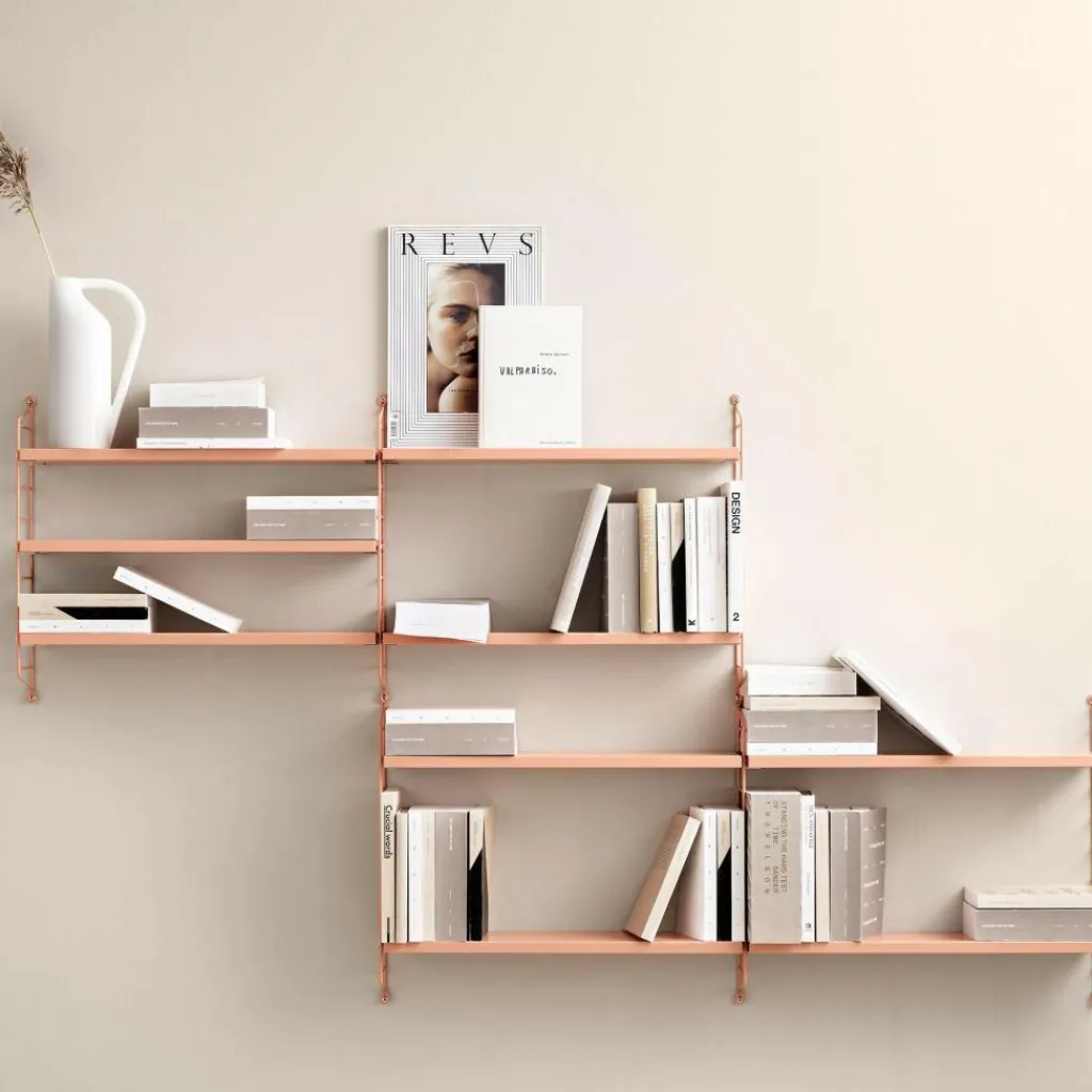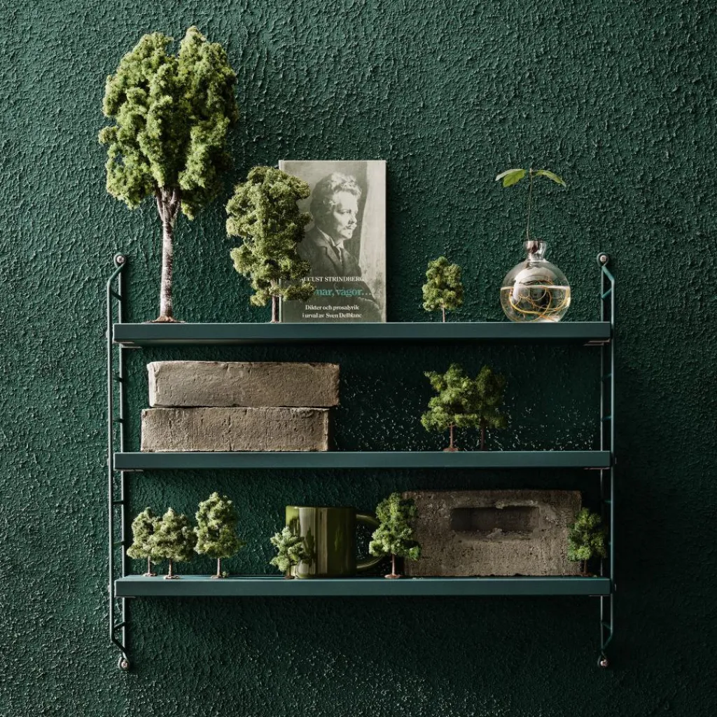 Das String Pocket Regal 60x50x15cm hat eine Höhe von 60 cm. Die Breite beträgt 50 cm und die Tiefe 15 cm. Aus derselben farbenfrohen Kollektion sind auch Regale in anderen Größen zu haben. Man kann sie ideal miteinander kombinieren.