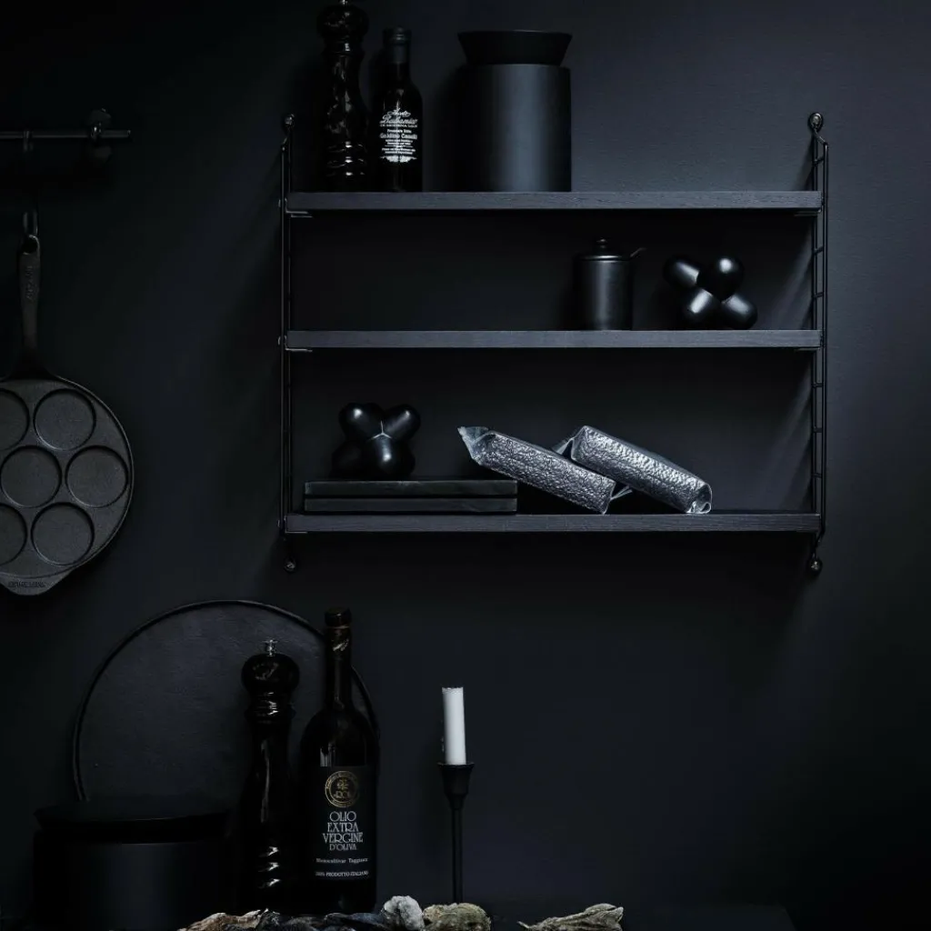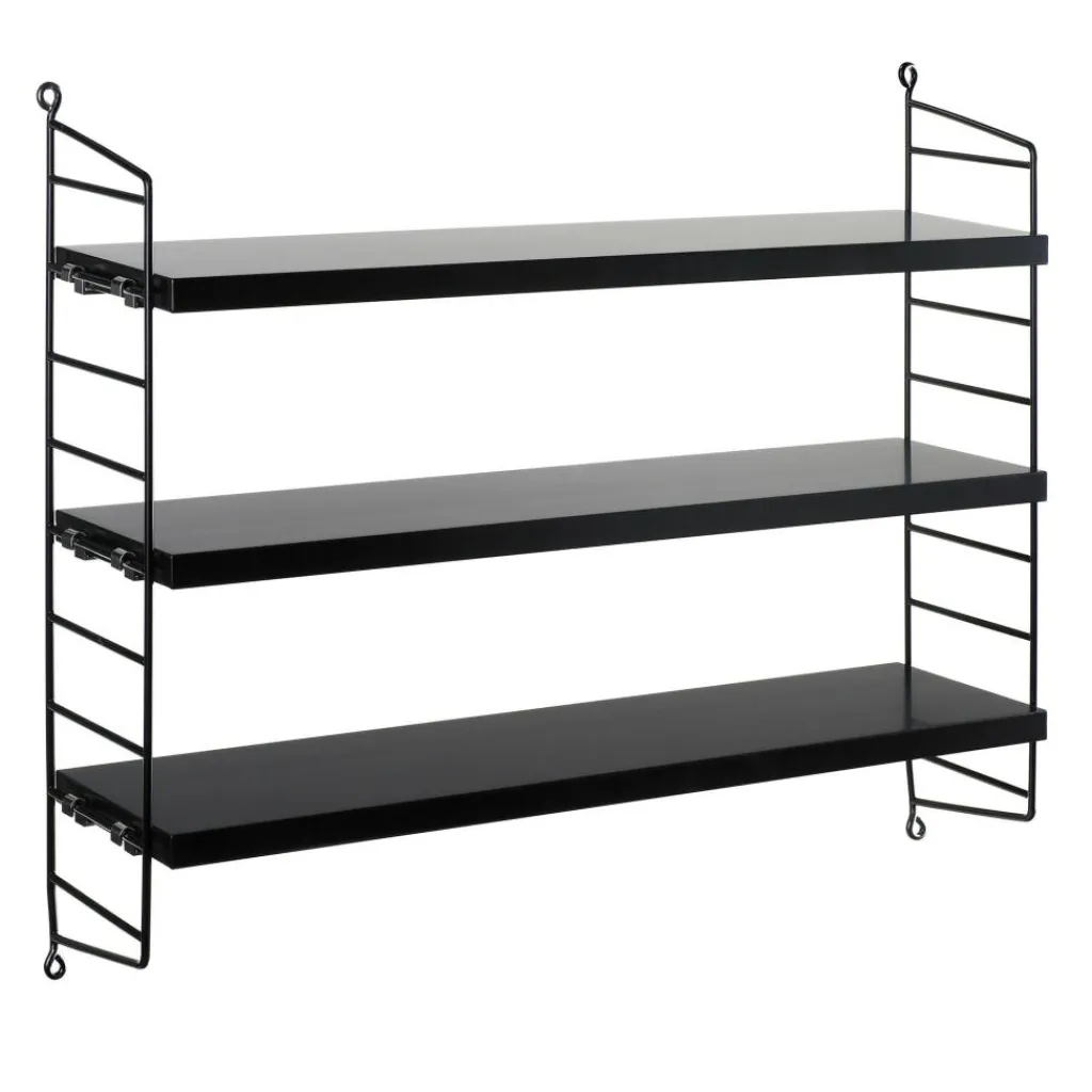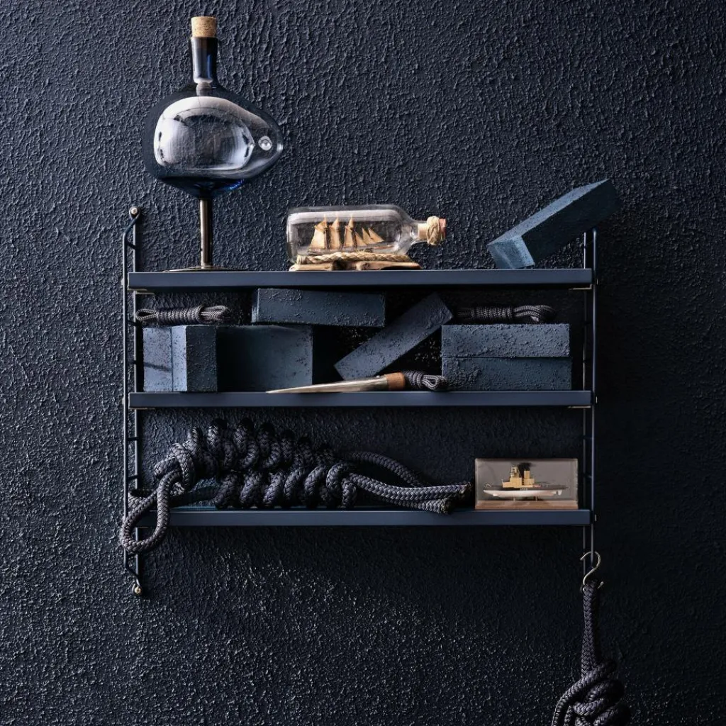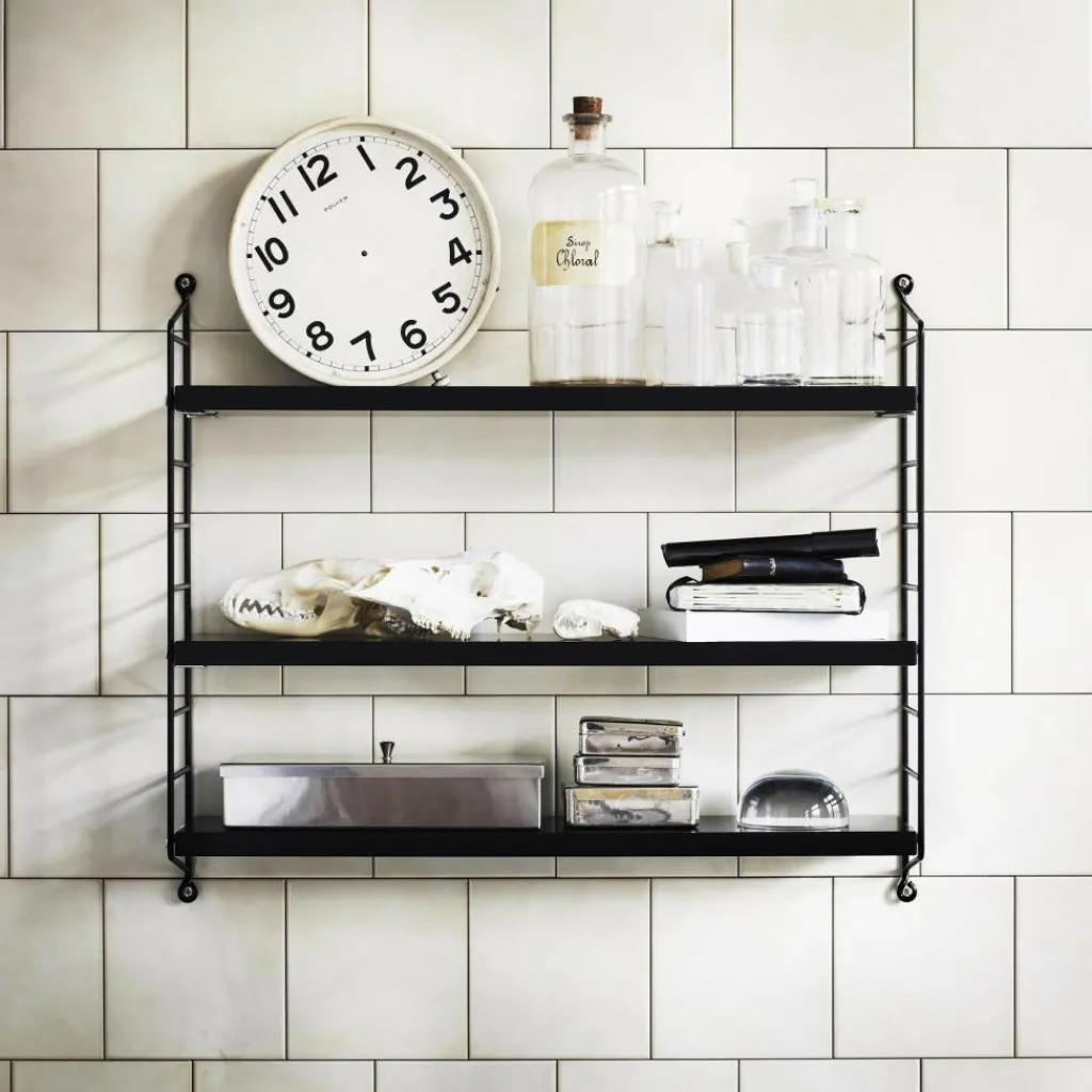 Das String Pocket Regal 60x50x15cm ist in jedem Raum ein praktischer Alltagshelfer. In der Küche können darauf Kräuter, Gewürze und Geschirr abgestellt werden. Es eignet sich auch für Büros, Wohn- und Kinderzimmer. Die seitlich montierten Regalwände ähneln einer Leiter. Zwischen den Sprossen können die drei mitgelieferten Einlagebretter in beliebiger Höhe eingehängt werden. Dazu dienen Klemmen aus Zink. Das Gestell besteht aus pulverbeschichtetem Stahl. Er ist mit wasserbasiertem und schadstoffarmem Lack überzogen. Für die Einlagebretter verwendet der Designer Holz. Es stehen unterschiedliche Farb- und Holzvarianten wie Esche, Eiche und Walnuss sowie zur Auswahl. Jedes Einlagebrett kann mit maximal 25 kg belastet werden.