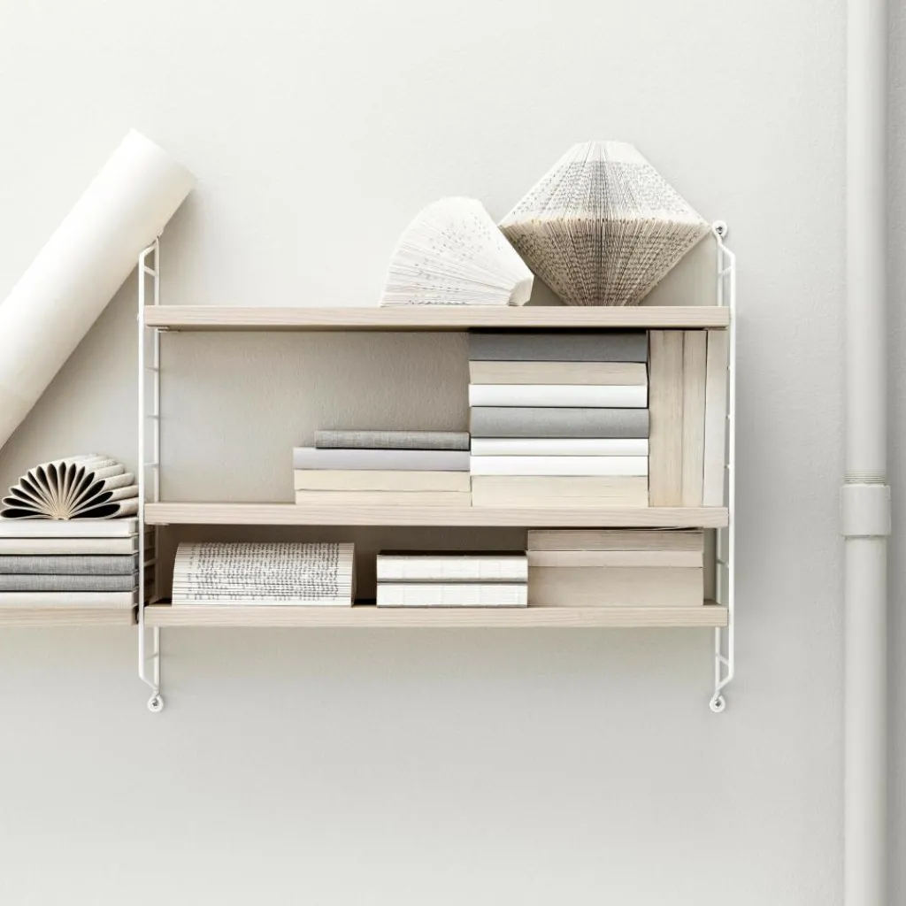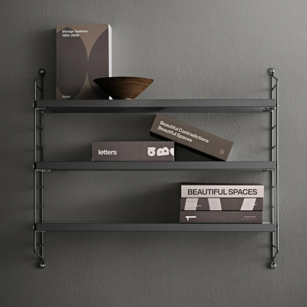 Das String Pocket Regal 60x50x15cm wurde von Nisse Strinning für die Marke String entworfen. Es ergänzt die legendäre String-Serie, die 1949 auf den Markt kam. Das ursprüngliche Regal wurde für einen Wettbewerb entworfen, den der Bonnier Verlag ins Leben rief. Dabei ging es darum, ein praktisches Bücherregal für die Buchreihe des Verlags zu finden.