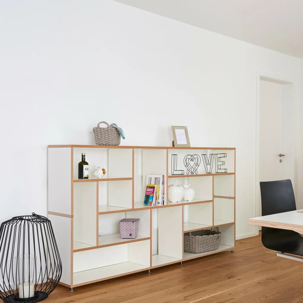 Dank der zahlreichen Positionsmöglichkeiten für die einzelnen Elemente passt sich das Hanibal Side Regal flexibel an die jeweilige Raumsituation an. Die unterschiedlich großen Regalfächer stellen vielfältige Stauraummöglichkeiten für Bücher, Mappen und Ordner zur Verfügung. Außerdem lässt Hanibal auch dekorative Highlights, attraktive Kunstobjekte und sehenswerte Sammlerstücke exzellent zur Geltung kommen.