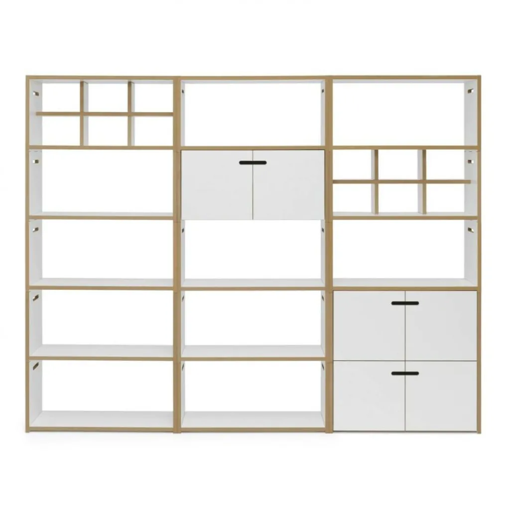 Das Hochstapler Regal mit Türen 228x179cm wurde von Designer Dirk Frömchen für den Hersteller Tojo entworfen. Es besticht durch sein klares Design und die hohe Funktionalität. Mithilfe von Regaleinsätzen und diversen Modulen lässt sich das Möbelstück an die individuellen Bedürfnisse anpassen.