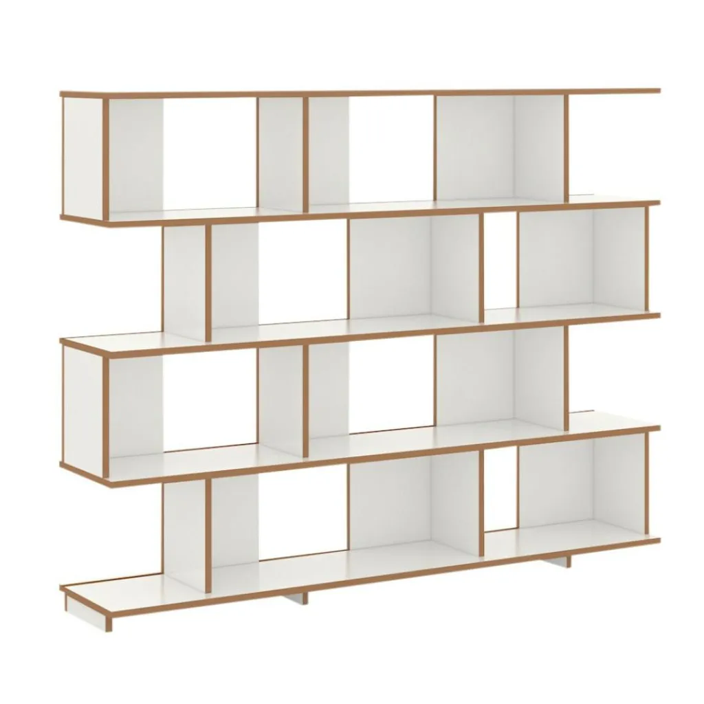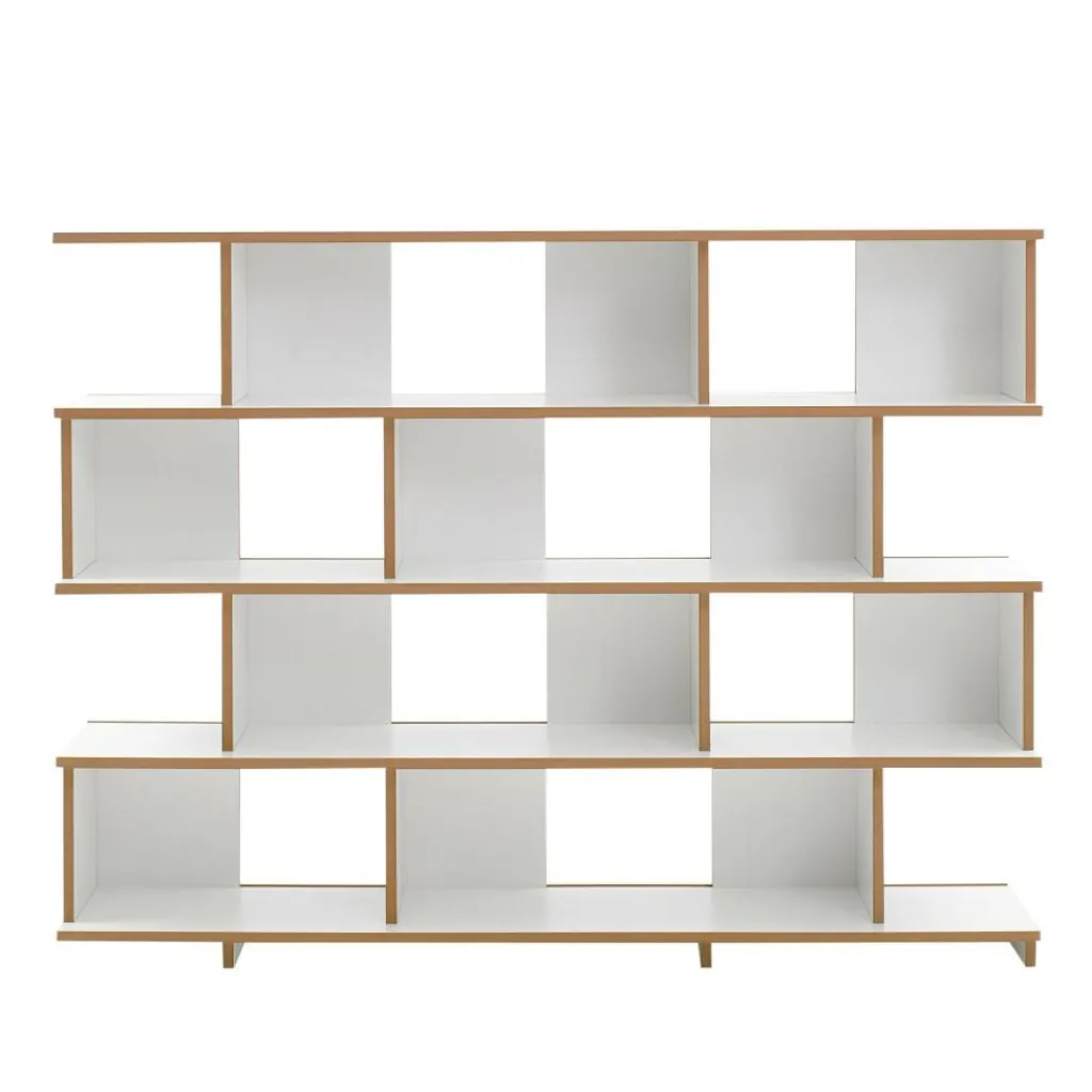 Bestehend aus den Grundelementen Regalboden und Regalwinkel basiert das Stell Regal H 149cm auf einem simplen Designkonzept. Die einzelnen Bauteile sind nämlich so ausgeführt, dass sie sich ohne weitere Hilfsmittel einfach ineinander stecken lassen. Sie bestehen aus hochwertigen MDF-Platten und sind weiß beschichtet. Ihre Kanten sind naturbelassen und bilden nicht nur einen attraktiven Kontrast zu den Abstellflächen, sie fügen sich zudem harmonisch in einen natürlich gestalteten Wohnraum ein. Dank zahlreicher Kombinations- und Erweiterungsmöglichkeiten lässt sich das Stell Regal H 149cm als raumhohe Regalwand, als frei stehendes Sideboard oder als Raumteiler verwenden. Es passt in ein geräumiges Wohnzimmer, trennt im Homeoffice Berufliches von Privatem und macht die Leseecke zu einem gemütlichen Rückzugsort. Darüber hinaus ist das Stell Regal 149cm perfekt für die Gestaltung kreativer Büros. Ordner finden zwischen den Regalböden ausreichend Platz.