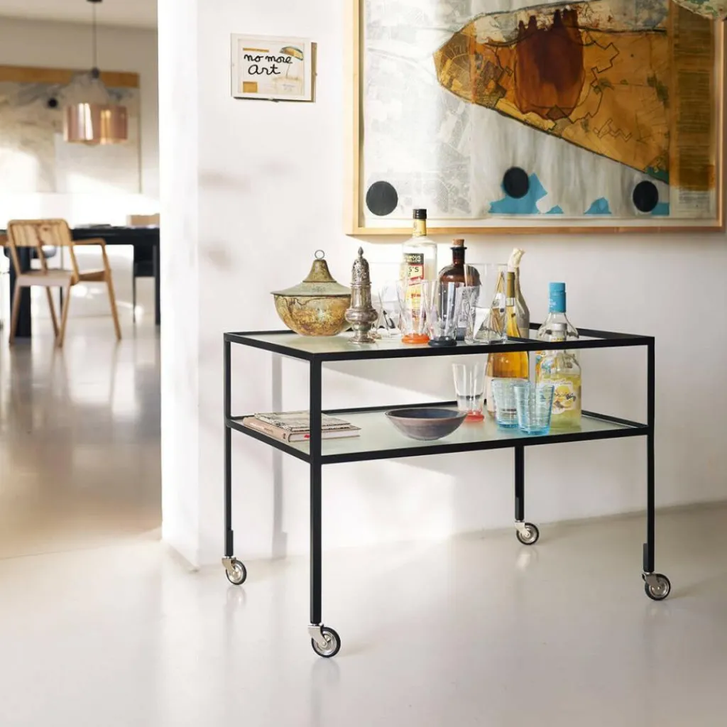 Mit seiner Größe von 70 x 46,4 x 50,6 cm passt sich der Barwagen Servierwagen formvollendet in seine Umgebung ein. Er kann ganz bequem ins Wohnzimmer geschoben werden. Dabei entlockt er allen Betrachtern mit seiner stilvollen Kombination aus 4-mm-Sicherheitsglas und schwarzen Stahlwinkeln ein ehrfürchtiges Staunen. Zudem können edle Spirituosen vor dem neutralen Hintergrund nur umso eindrucksvoller zur Geltung kommen.