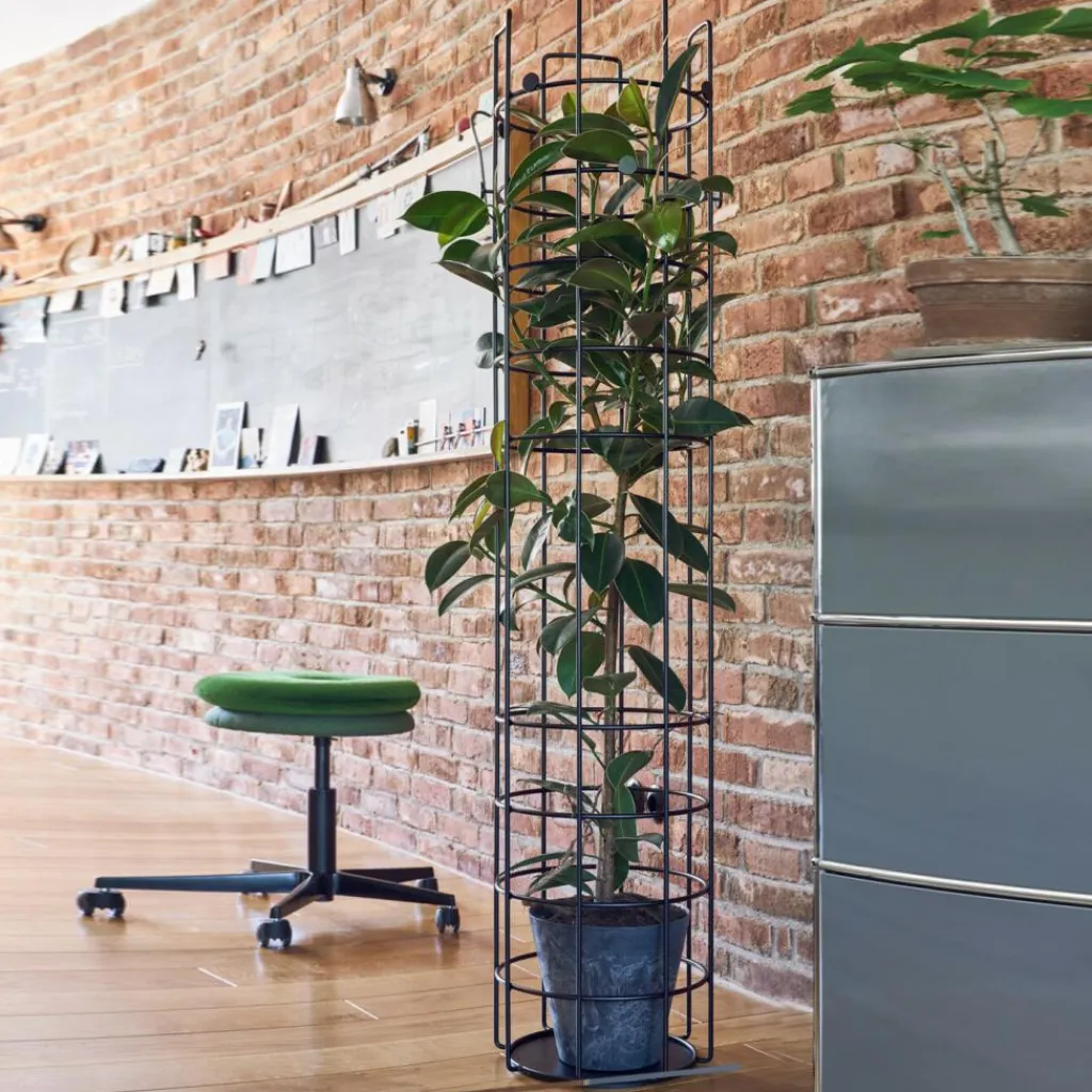 Bei der Bazar Standgarderobe treffen pragmatische Designansätze auf innovative Lösungen. Die 170 cm hohe, zylinderförmige Garderobe besteht aus pulverbeschichtetem Rundstahl und verfügt über einen Durchmesser von 35 cm. Sie nimmt eine Vielzahl verschiedener Gegenstände problemlos auf, so können Sie Jacken und Mäntel an den im oberen Bereich angebrachten Haken aufhängen. Somit wird der Platz zwischen Decke und Boden optimal genutzt und wichtige Gegenstände bleiben stets in Reichweite. Die Standgarderobe ist in mehreren Farben erhältlich und passt dank ihres futuristischen Designs ausgezeichnet in moderne und minimalistische Wohnräume.