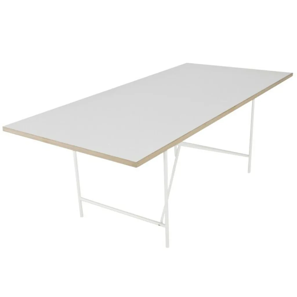 Zusammengesetzt aus einer melaminbeschichteten Spanplatte und einem Gestell aus Stahlrohrstangen beeindruckt der Eiermann 1 Tisch 180x90cm Gestell exzentrisch mit seinem minimalistischen Design. Die außermittige Konstruktion bietet maximale Beinfreiheit und ermöglicht ein zurückgelehntes Sitzen mit ausgestreckten Beinen. Gleichzeitig garantieren die gekreuzten Verstrebungen eine hohe Belastbarkeit. Der Designtisch lässt sich mit weiteren Eiermann-Modellen zu einem großzügigen Coworking Space kombinieren. Damit passt er ins Arbeitszimmer daheim und in ein großräumiges Kreativbüro. Mit seiner hochwertigen Eichenkante und dem wahlweise verchromten oder lackierten Gestell lässt sich der Eiermann 1 Tisch 180x90cm Gestell exzentrisch zudem harmonisch an seine Umgebung anpassen.