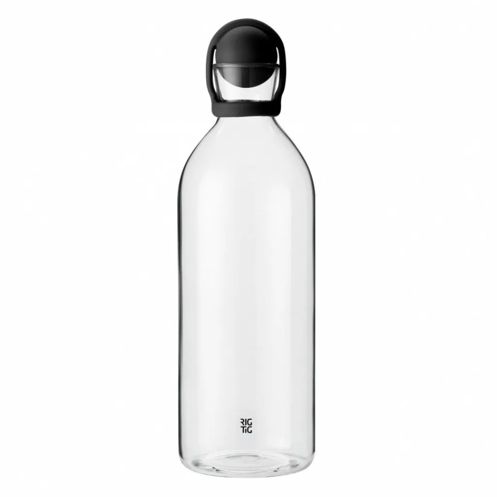 Die COOL-IT Karaffe 1,5L besteht aus klarem Glas und einem Verschluss aus Kunststoff. Der Verschluss ist von der Funktion an historische Bügelverschlüsse für Bierflaschen angelehnt. Allerdings wurde das Prinzip stark vereinfacht und verbessert. Der kugelförmige Stopfen wird von einer Manschette auf der Flaschenöffnung gehalten. Durch seitliches Abstreifen öffnet man die Karaffe leicht und elegant. Das Verschließen ist ebenso einfach. Alle Teile sind so konstruiert, dass sie sich leicht reinigen lassen. Die Höhe der Karaffe beträgt 31 cm, der Durchmesser ist 9,6 cm. Die Karaffe hat ein Fassungsvermögen von 1,5 l. Bei den Verschlüssen kann man unterschiedliche Farben wählen: grau, blau oder orange.