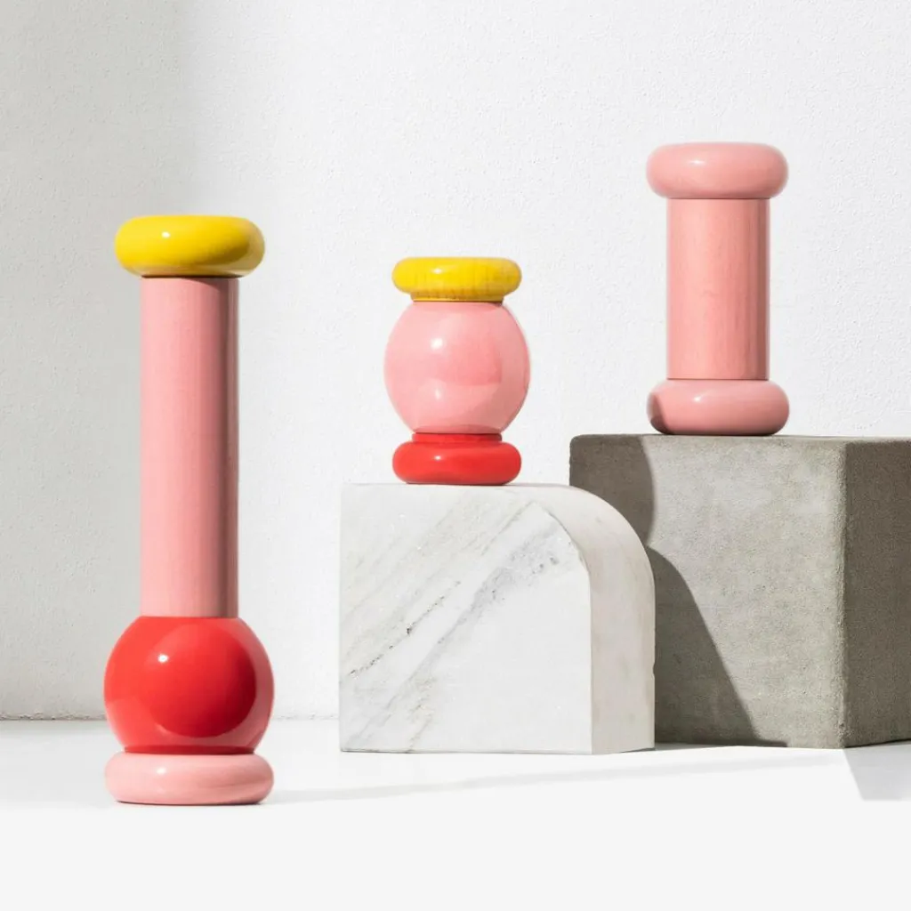 Das Original der Alessi100 ES19 Gewürzmühle wurde von Ettore Sottsass für die Marke Alessi entworfen. Zum 100-Jahr-Jubiläum des Herstellers wird der Designklassiker aus 1989 wieder herausgegeben. Die Gewürzmühle gehört zu einer Kollektion von Küchenartikeln, deren Bezeichnung Twergi übersetzt Kobold bedeutet und auf das witzige Design und die kräftigen Farben anspielt.