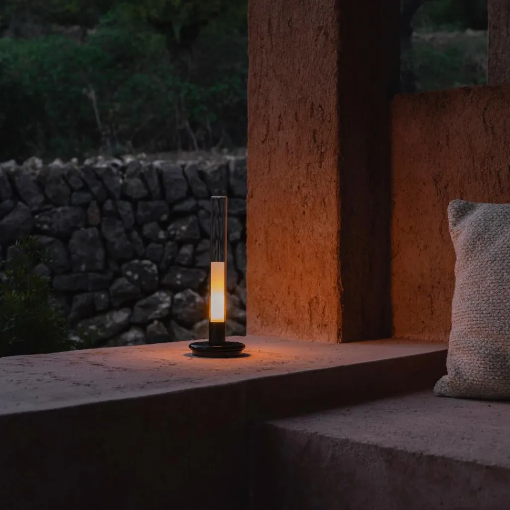 Hinter dem nostalgischen Design der Sylvestrina LED Akkuleuchte verbirgt sich eine ausgeklügelte Technik. Sie reduziert sich auf eine glänzende, runde Basis, die aus Zamak gefertigt ist. Aus der Mitte erhebt sich eine Röhre aus Pyrexglas. Sie dient als Leuchtenschirm, der ein fix verbautes Leuchtmittel enthält. Es erreicht die halbe Höhe des Schirms und kann nicht getauscht werden. Die in Schutzart IP44 gefertigte Sylvestrina LED Akkuleuchte ist spritzwasserfest und somit für den Außenbereich geeignet. Dabei funktioniert sie dank eines leistungsstarken Akkus stromunabhängig: 5 Stunden dauert es, bis er mit dem mitgelieferten 100 cm langen Kabel voll aufgeladen ist. Dann spendet die Leuchte, die an eine Kerze erinnert, bei voller Intensität 7 Stunden Licht. Sie lässt sich jedoch an den im Schirm integrierten Schalter um eine Stufe dimmen und leuchtet dann sogar für 14 Stunden.